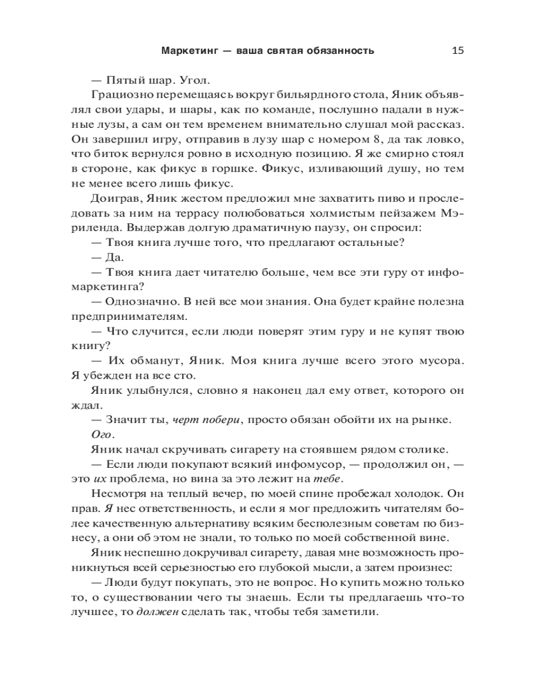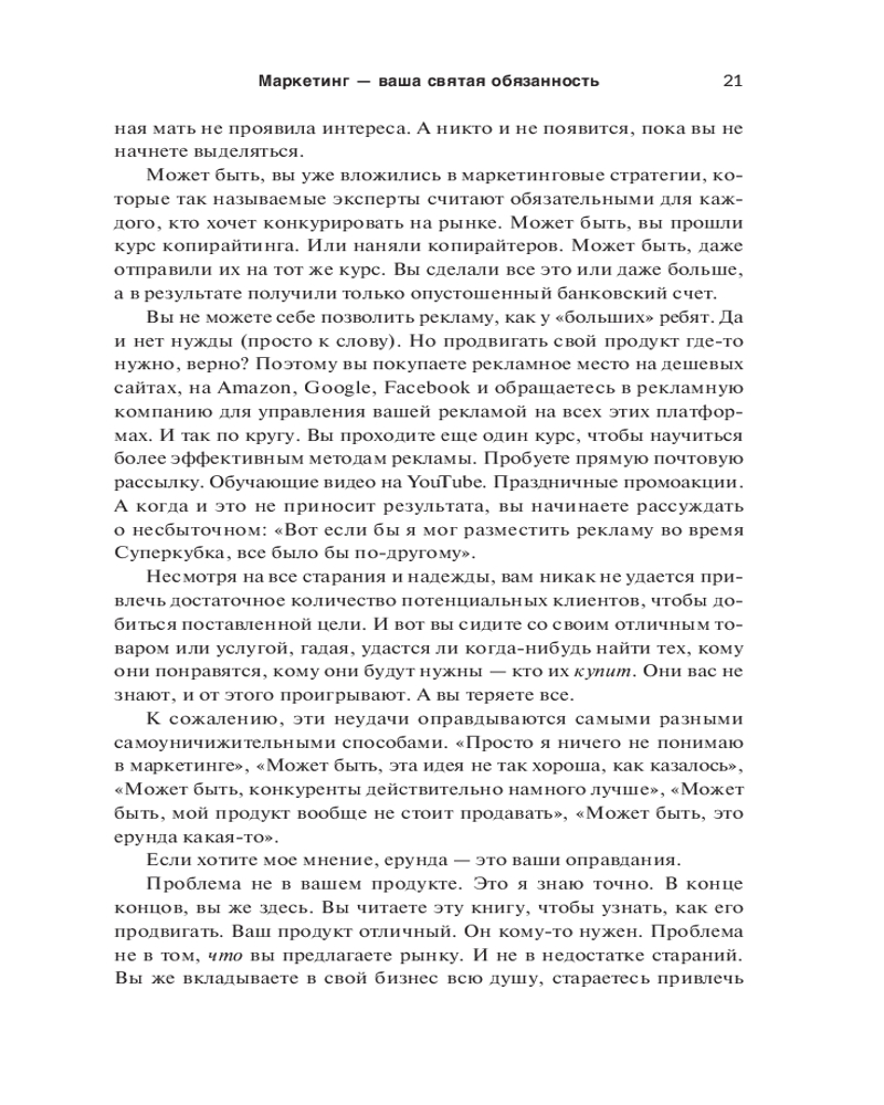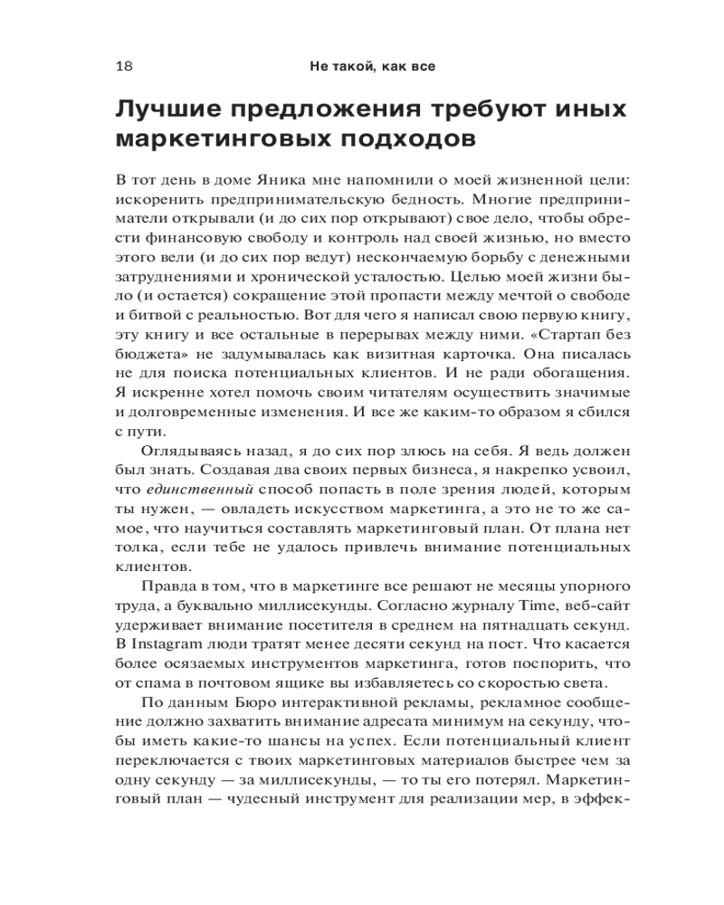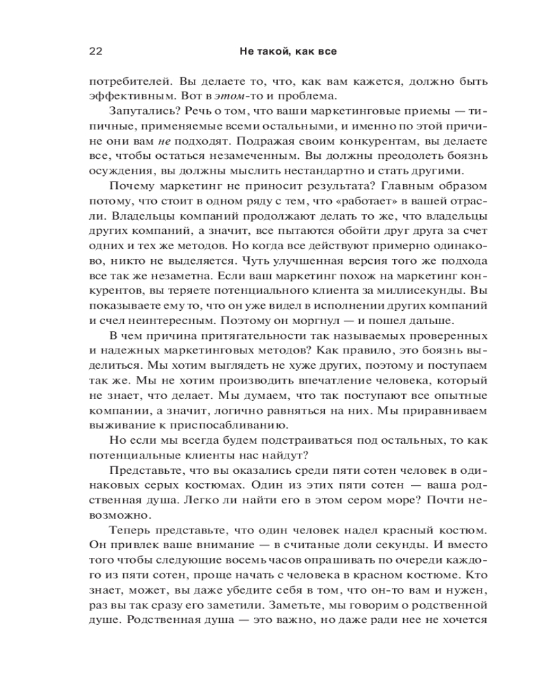 💳 Оплатить за товар можно при получении 🇰🇿 Есть бесплатная доставка по Казахстану от 1 дня 🎁 Копите бонусы с каждой покупки Серия: Бизнес Многие предприниматели на перенасыщенных рынках чувствуют себя буквально невидимками. Они точно знают, что обладают конкурентным преимуществом, но никак не могут привлечь потребителей. Причина в том, что для клиентов вы должны быть не просто лучшим, а другим, непохожим на остальных. И победит тот, чей маркетинг перетянет внимание покупателей на себя. |
