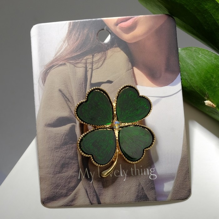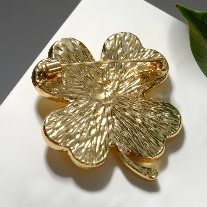 Приятная брошь, в жизни лучше фото, потому что на фото цвет очень желтит, а та что мне пришла - нежного светлобежевого цвета густых сливок или сгущёнки (это вставки из пластика, вклеенные, как бы утопленные в золотистое основание), аккуратно сделана, не тяжёлая, будет уместна на выход на мероприятие, и, также, освежит каждодневный образ. Можно покупать не опасаясь и наслаждаться. Всем клеверной удачи и пусть вас оберегает!