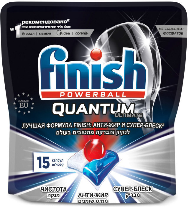 Finish Капсулы для посудомоечной машины «Quantum Ultimate»В данный момент этот товар отсутствует в продаже. Возможно, у нас найдется аналогичный или похожий товар здесь. Таблетки для посудомоечных машин Finish «Quantum Ultimate» — это бесфосфатное средство для мытья посуды в посудомоечных машинах. Новый Finish «Quantum Ultimate» обеспечивает максимальное очищение и блеск. Его новая капсула с тремя быстрорастворимый камерами действует даже в Эко-цикле. |