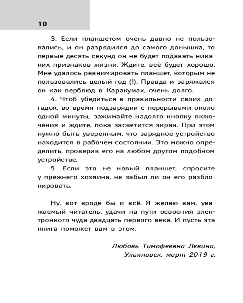 В своих книгах Любовь Тимофеевна развенчивает миф о сложности гаджетов, делится секретами, как с легкостью стать продвинутым пользователем. В книге «Планшет для любимых чайников» можно узнать о всех интересных и полезных функциях гаджета.После прочтения книги вы без труда найдете общий язык со своим планшетом: научитесь пользоваться приложениями, совершать интернет-покупки, смотреть любимые фильмы и даже общаться с родными по видеосвязи.