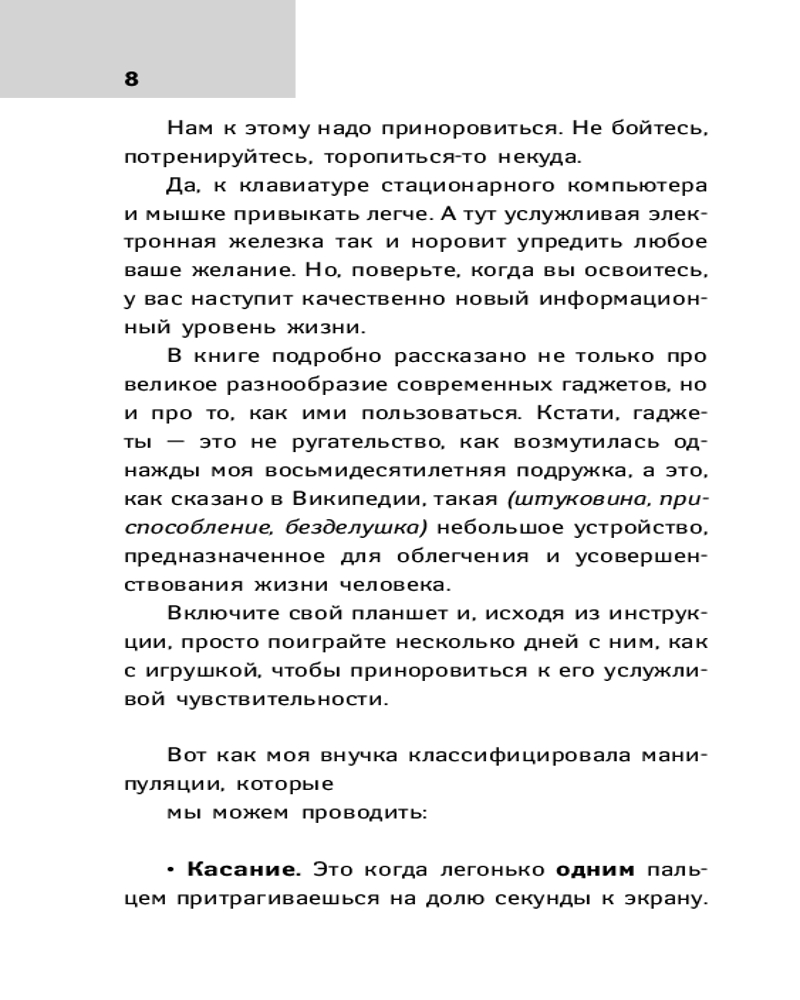 Новое издание «Планшет для любимых чайников» — это настоящий путеводитель в мире современной техники. Благодаря многочисленным иллюстрациям подружиться с гаджетом сможет даже самый «ржавый чайник»! |