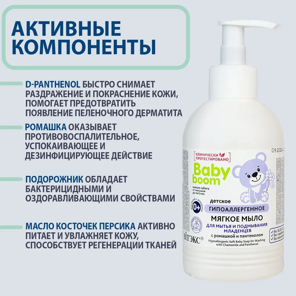 💳 Оплатить за товар можно при получении 🇰🇿 Есть бесплатная доставка по Казахстану от 1 дня 🎁 Копите бонусы с каждой покупки Серия: Baby Boom Ваш любимый малыш нуждается в нежности, ласке и правильном уходе, поэтому мы стремимся подарить ему лучшее, что даёт природа и современная наука. Мягкое мыло от Витэкс с гипоаллергенной формулой идеально подходит для ежедневной гигиены детей с первых дней жизни. Ультрамягкие очищающие компоненты образуют нежную кремовую пену, которая очень бережно очищает нежную кожу младенцев, смягчает ее, не пересушивает и не раздражает слизистые, что очень важно при частой смене подгузника. |