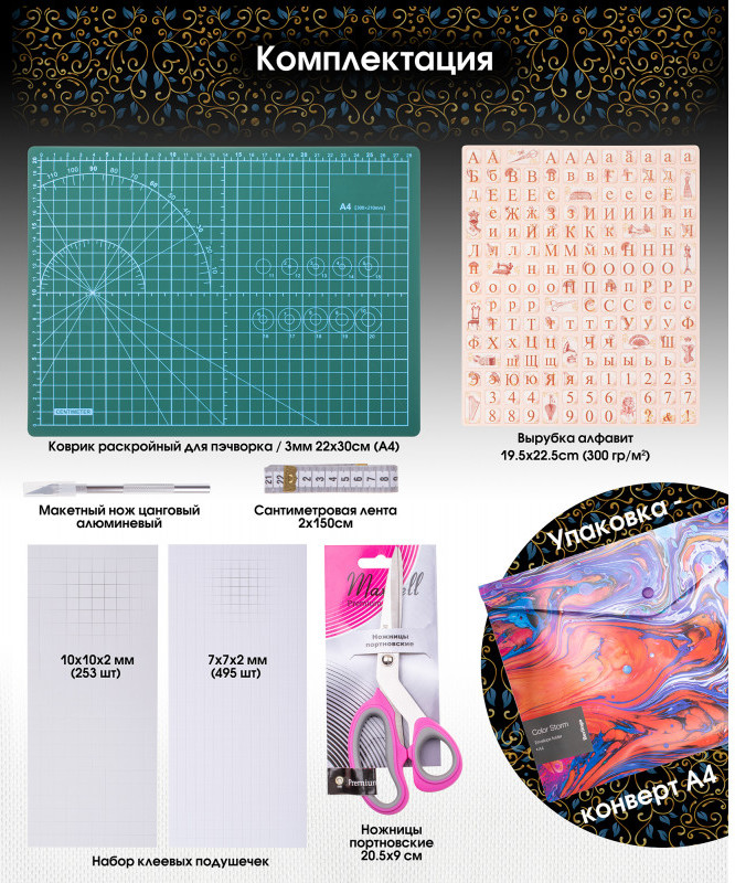 💳 Оплатить за товар можно при получении 🇰🇿 Есть бесплатная доставка по Казахстану от 1 дня 🎁 Копите бонусы с каждой покупки Создание композиций в различных техниках — это интересное и увлекательное дело и, как и в любом занятии творчеством всегда нужны вспомогательные инструменты. Этот набор может стать основой вашей коллекции инструментов для творчества и моделирования деталей в таких техниках как пэчворк, скрапбукинг, кардмейкинг! |