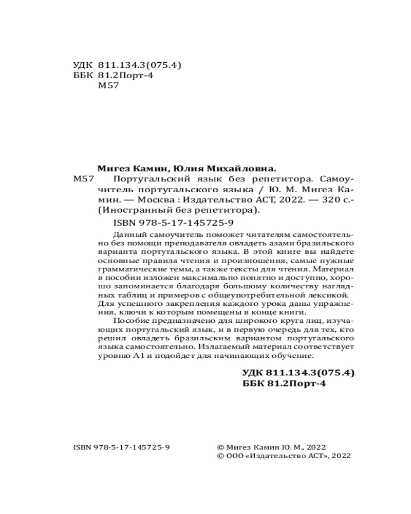 💳 Оплатить за товар можно при получении 🇰🇿 Есть бесплатная доставка по Казахстану 🎁 Копите бонусы с каждой покупки Серия: Иностранный без репетитора Данный самоучитель поможет читателям самостоятельно без помощи преподавателя овладеть азами бразильского варианта португальского языка. В этой книге вы найдете основные правила чтения и произношения, самые нужные грамматические темы, а также тексты для чтения. Материал в пособии изложен максимально понятно и доступно, хорошо запоминается благодаря большому количеству наглядных таблиц и примеров с общеупотребительной лексикой. |