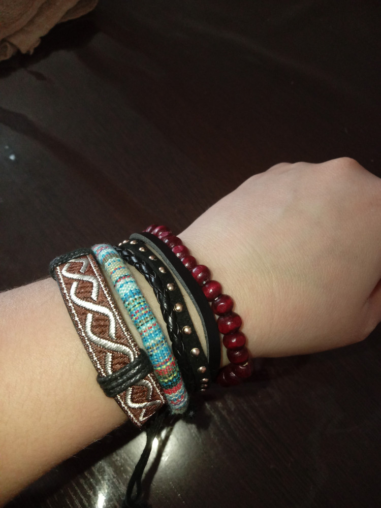 голубой и из бусин браслет, остальные выглядят не очень