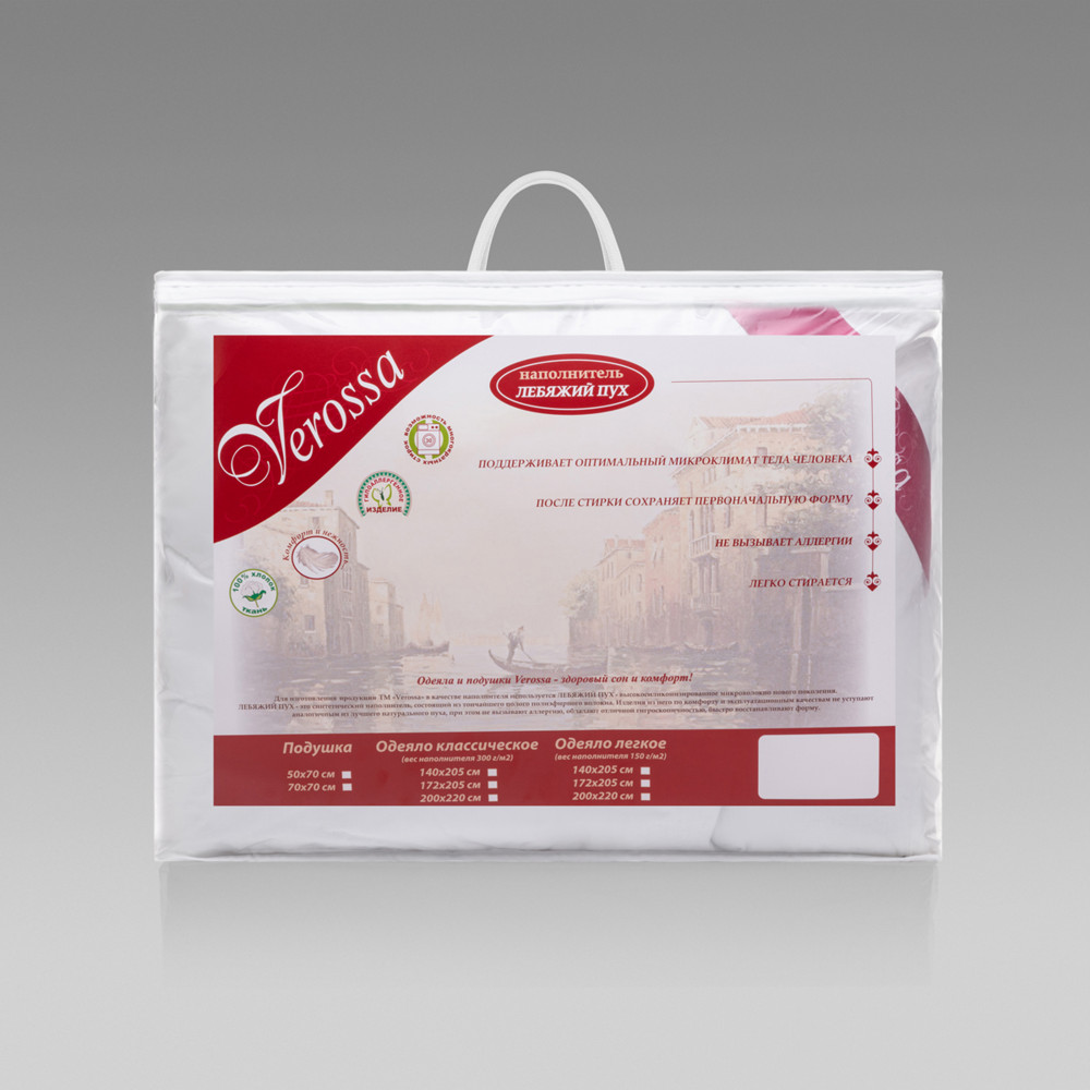 💳 Оплатить за товар можно при получении 🇰🇿 Есть бесплатная доставка по Казахстану от 1 дня 🎁 Копите бонусы с каждой покупки Серия: Classic Одеяло Verossa Classic с наполнителем из искусственного лебяжьего пуха накроет вас нежностью и уютом. Одеяло создано из тончайшего волокна, структура которого полностью повторяет струкутру натурального пуха. Волокно в десять раз тоньше волоса человека, именно поэтому изделия из него такие пышные, невесомые и при этом упругие. Они отлично регулируют тепло, препятствуют возникновению бактерий и образованию пылевого клеща. Прочная натуральная ткань чехла с «перламутровым» узором приятна на ощупь, не требует особого ухода. Благодаря уникальному наполнителю и натуральной хлопковой ткани изделие прочное, при этом мягкое и объемное, словно облако. Оно прослужит вам долго, гарантируя спокойный здоровый сон. |