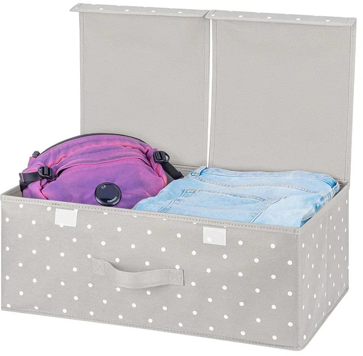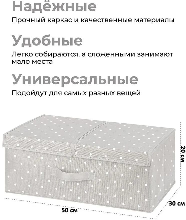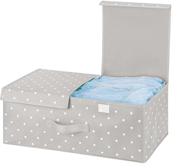 El Casa Короб для хранениякачество удобство порядок В данный момент этот товар отсутствует в продаже. Возможно, у нас найдется аналогичный или похожий товар здесь. Серия: Серый горошек Короб складной с крышкой поможет организовать хранение в самых разных помещениях: в прихожей, гостиной, спальне, детской и любых других комнатах. Такие кофры эстетично выглядят. Их можно разместить не только в шкафу, но и на открытых полках. Помогут организовать систему хранения самых разных вещей в едином стиле, будь то игрушки, одежда, канцелярия, косметика, нижнее белье, носки, рукоделие или другие мелочи. Органайзер выполнен из нетканого материала и имеет плотные картонные вставки. Имеет ручку, чтобы коробку было удобно переносить и выдвигать как ящик. Такой контейнер станет удобным дополнением дома и поможет эффективно использовать каждый сантиметр пространства. |