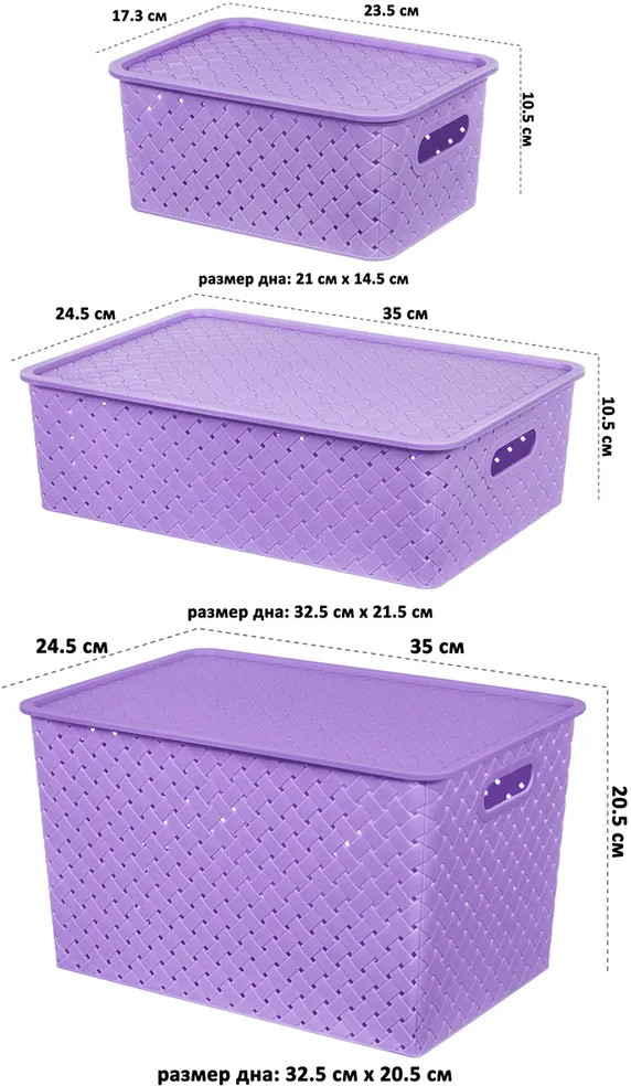 Коробки хорошего качества, но для меня слишком маленькие. Немного не рассчитала с размером. Доля хранения вещей не практичные из-за размера. Больше подойдут в ванну, а так качество очень хорошее - рекомендую.