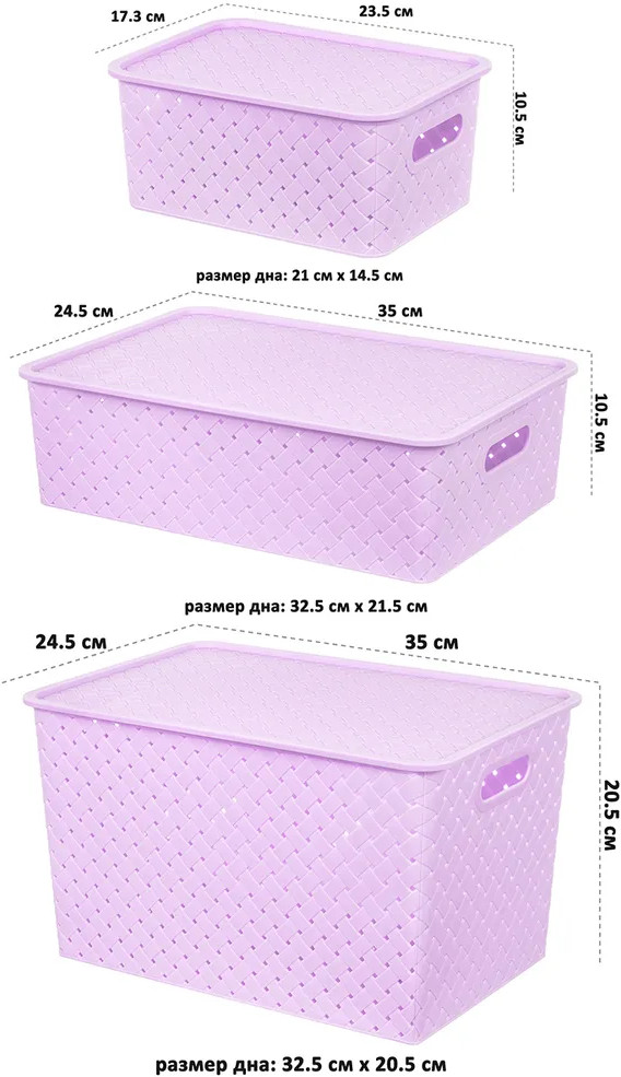 Коробки хорошего качества, но для меня слишком маленькие. Немного не рассчитала с размером. Доля хранения вещей не практичные из-за размера. Больше подойдут в ванну, а так качество очень хорошее - рекомендую.