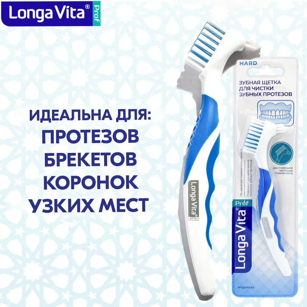 Longa Vita Щетка зубная для протезов-20% +16 удобная форма хорошо чистит удаляет желтизну