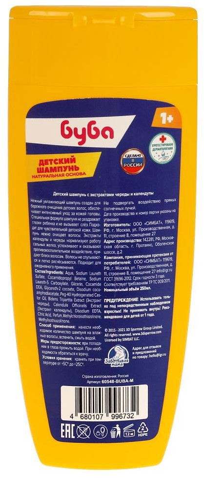 Любимый Буба. Раньше любили домовёнка Кузю, но его в продаже нет. Шампунь хороший, пенится. Всё понравилось.