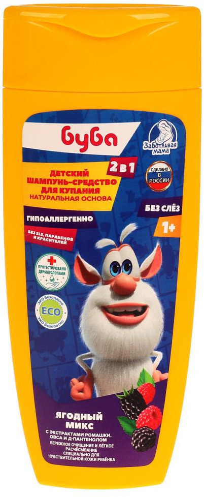 Заботливая мама Шампунь-средство для купания детский с экстрактами ромашки, овса и д-пантенолом «Ягодный микс»