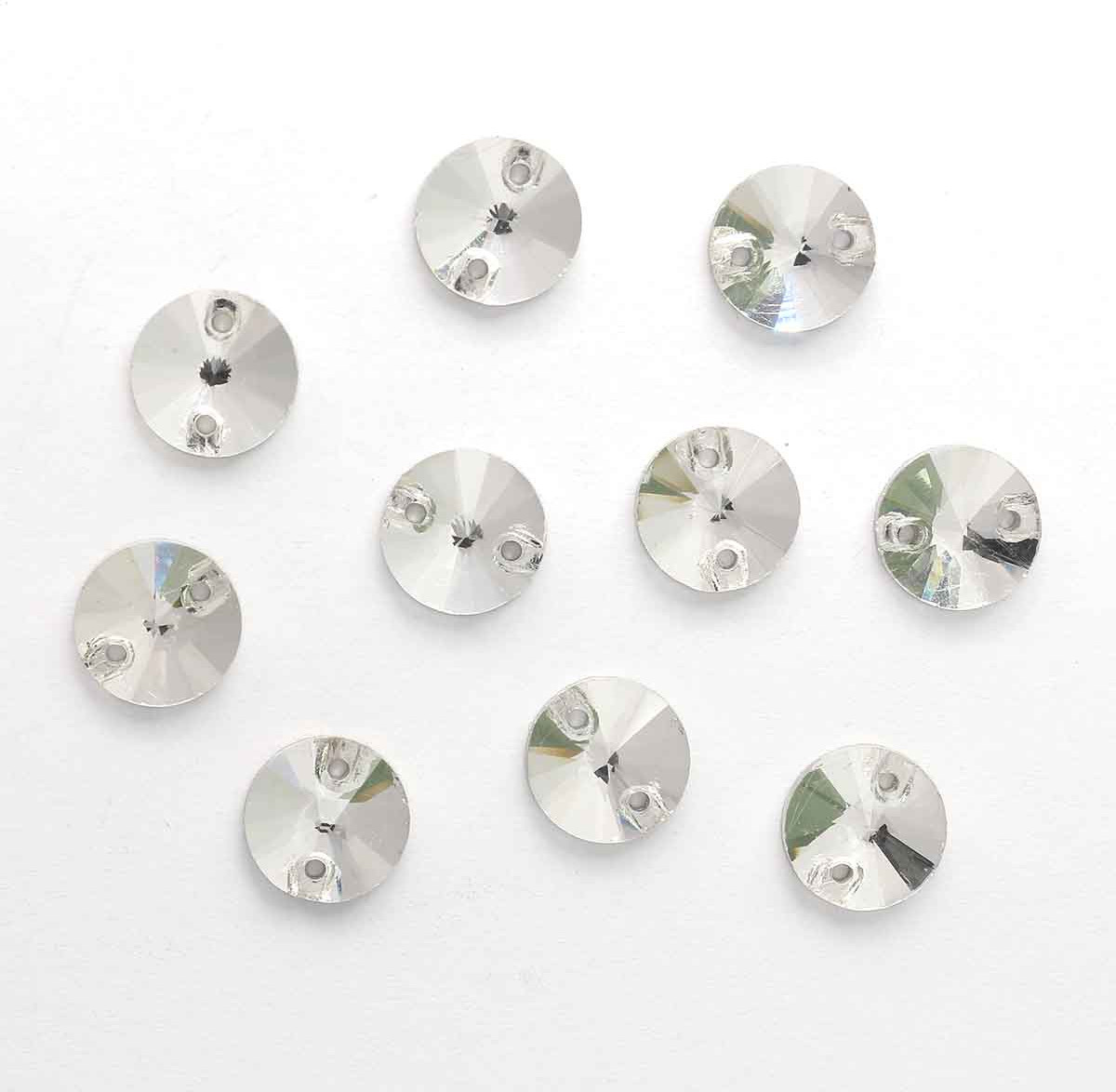 Пришивные стразы круглой огранки изготовлены из прозрачного хрустального стекла с покрытием, которое придает дополнительные цветные переливы. Хрусталь длительно сохраняет насыщенность и яркий блеск. Чтобы пришить стразы, используйте мононить, тонкую прозрачную леску и другие устойчивые к истиранию нити.