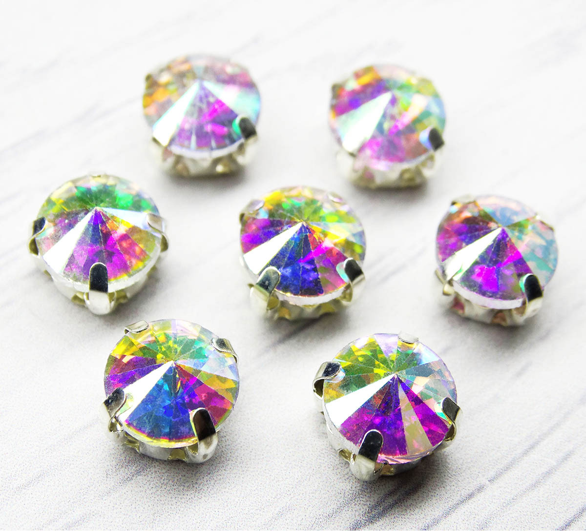 Astra&Craft Стразы хрустальные c AB-покрытием в цапахВ данный момент этот товар отсутствует в продаже. Возможно, у нас найдется аналогичный или похожий товар здесь. Стразы круглой огранки в металлических цапах под серебро с AB-покрытием, которое создает радужные переливы — универсальная основа для авторской бижутерии. Из таких страз можно плести украшения на тонкой ювелирной проволоке, создавать броши, серьги, нарядные заколки для волос с использованием сутажной тесьмы и многое другое. Кроме того, стразами в цапах можно расшивать праздничную одежду, костюмы для выступлений. Изготовлены из прозрачного хрустального стекла, которое длительное время сохраняет насыщенность и яркий блеск. |