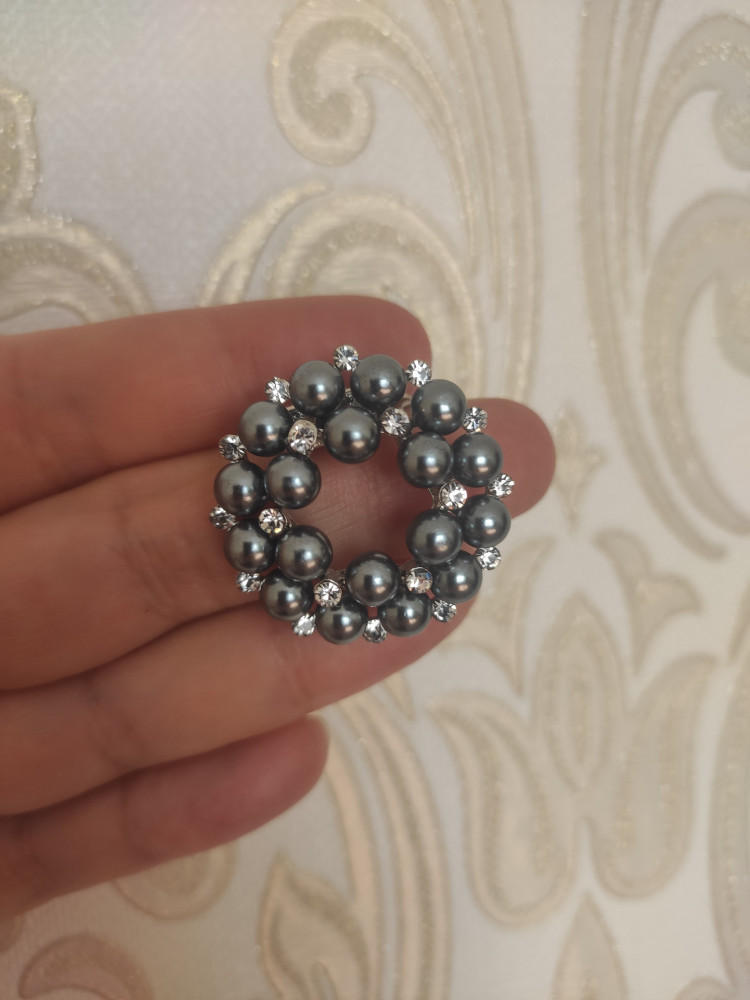 Смотрится очень нежно. механизм зажима туговат. Стразы хорошего качества, красиво сверкают.