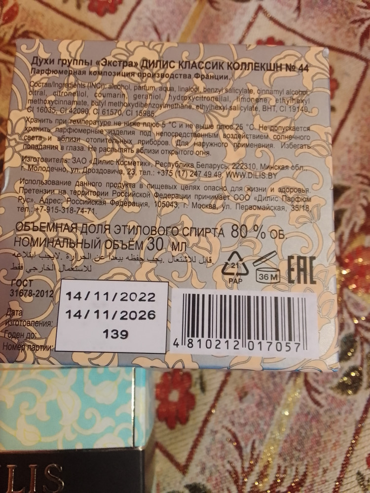 Это третий аромат из Classic collection. Неожиданно открыла для себя эту линейку(очнулась,когда многие ароматы уже сняли с производства,ха-ха) Оригинал Libre(под него и делали номер 44) у меня был,продала,истратив 1/2 флакона.Чет надоел). И в номере 44 действительно прослеживаются легко узнаваемые нотки Либре YSL.Но совсем нет лаванды,которая как раз таки задавала тон всему аромату. Схожесть их поэтому крайне мала. Но мне очень понравился данный белорусский парфюм!Он легкий,нежный,женственный. Чувствую хорошо здесь свежее яблочко/сладкую розу,вкусный персик. Очень политкорректный,на работу буду носить с удовольствием!Настроение поднимает этот парфюм. Стойкость как и у всей линейки средняя. Но за такую цену тратить его легко и приятно) Оформление шикарное:бархатный постамент, плотный картон. Доставка Флип,как всегда, божественна. Благодарю за скидки.