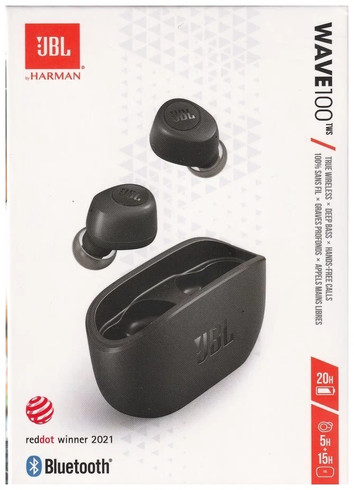Наушники JBL Wave 100TWS примечательны классическим оформлением в черном цвете, эргономичным дизайном, технологичностью и продолжительной автономностью. Закрытое акустическое исполнение и динамики 8 мм при поддержке технологии JBL Deep Bass Sound обеспечивают насыщенное детализированное звучание. Интегрированный микрофон отвечает за четкость голосовой связи в процессе общения. Мягкие вкладыши способствуют комфортному размещению наушников в слуховом канале. JBL Wave 100TWS работают без проводов на основе встроенного аккумулятора, который демонстрирует около 5 часов автономности. Зарядная станция помогает выполнить несколько полноценных зарядок и предлагает дополнительно 15 часов автономности. Из других особенностей JBL Wave 100TWS отмечаются монорежим, световой индикатор состояния и голосовое управление.