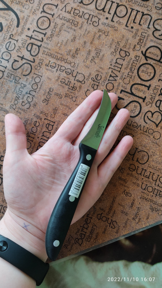 Мне нож понравился. Удобная рукоятка. Мне он показался недостаточно острым, поэтому сразу подточила немного. Чистить овощи удобно.