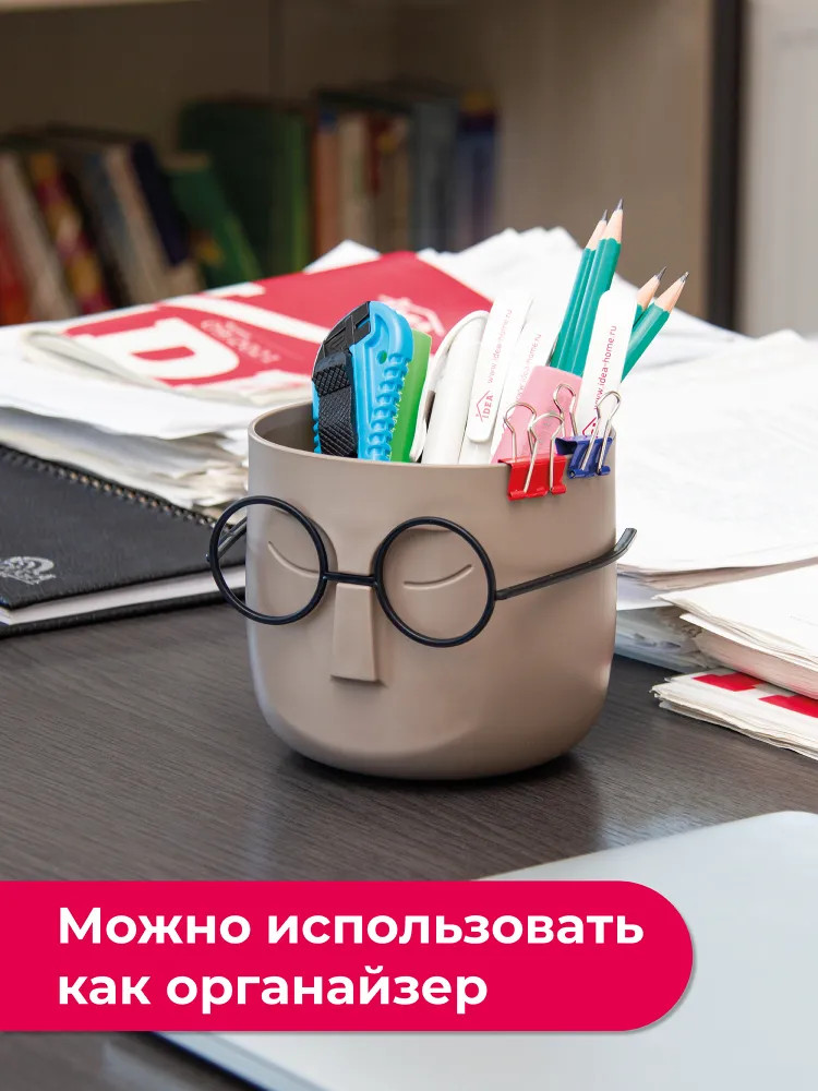 Симпатичное кашпо. Брали для ручек и карандашей, смотрится на столе хорошо, вместительное.