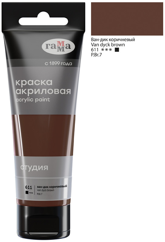 Гамма Краска акриловая, 611 ван-дик коричневый
