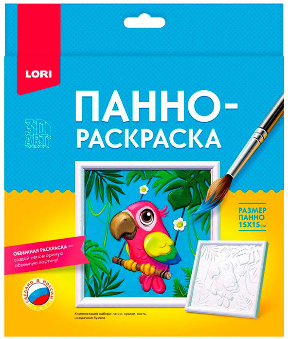 Lori Панно-раскраска «Попугай»В данный момент этот товар отсутствует в продаже. Возможно, у нас найдется аналогичный или похожий товар здесь. Набор для росписи объемной картинки. Заготовка для объемного панно размером 15×15 см выполнена из пенополиуретана и полностью готова к росписи. Задача ребёнка — сделать заготовку яркой и интересной при помощи акриловых красок. |