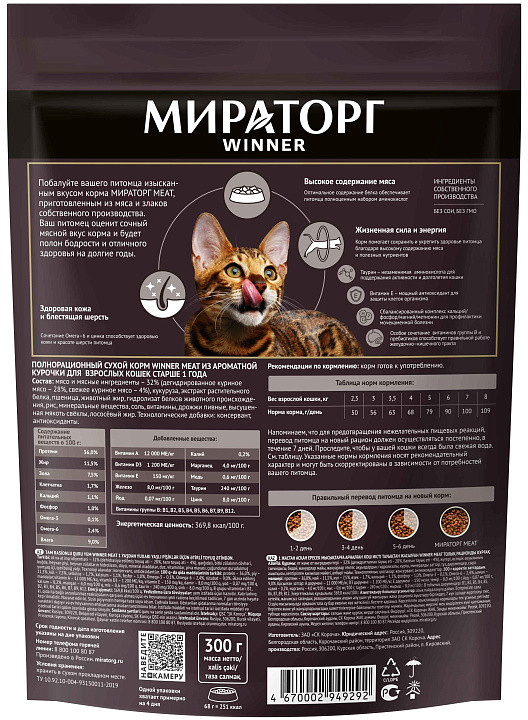 Мираторг Корм для взрослых кошек из ароматной курочки