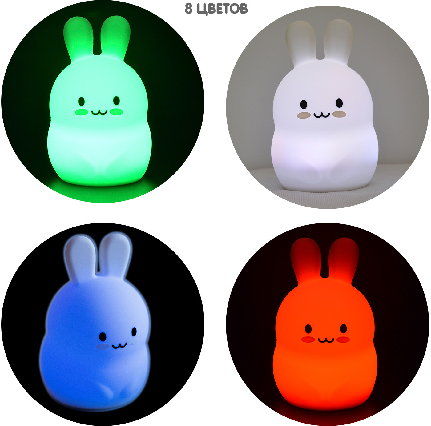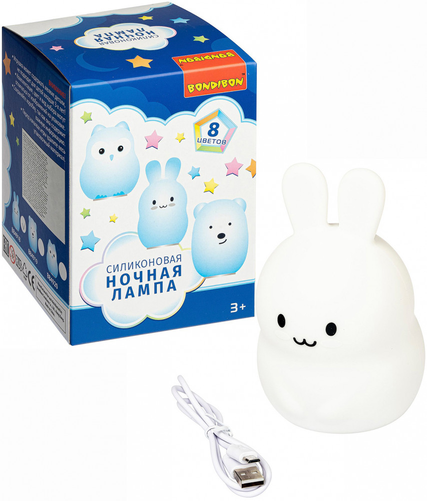 Bondibon Лампа ночная «Зайка»В данный момент этот товар отсутствует в продаже. Возможно, у нас найдется аналогичный или похожий товар здесь. Силиконовая ночная лампа «Зайка» от ТМ Bondibon — это замечательная зверушка, которую можно гладить и обнимать. Включается нажатием кнопки на дне светильника. Прикосновением можно переключать 8 цветов подсветки или выключить. Работает от встроенного аккумулятора, имеет в комплекте шнур для подзарядки с разъёмом USB. Игрушка предназначена для детей от 3 лет. |