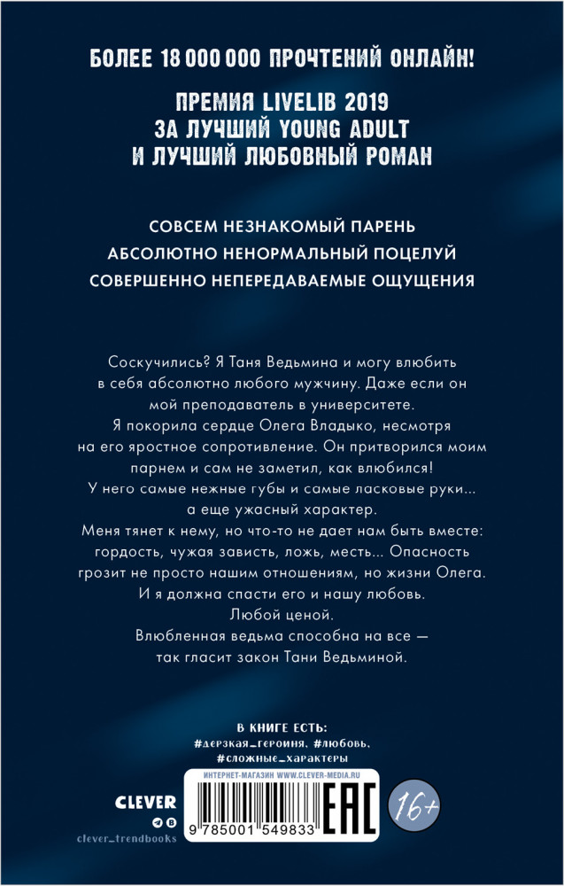 💳 Оплатить за товар можно при получении 🇰🇿 Есть бесплатная доставка по Казахстану от 1 дня 🎁 Копите бонусы с каждой покупки Серия: #trendbooks Соскучились? Я — Таня Ведьмина и могу влюбить в себя абсолютно любого мужчину. Даже если он — мой преподаватель в университете. |