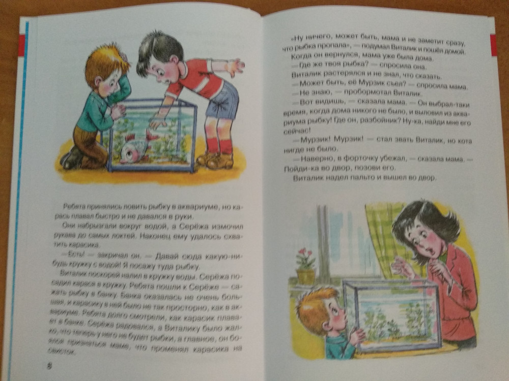 Для нас вся эта серия издательства "Самовар" стала находкой, поскольку книжек покупаем невероятное количество и тратим на них очень много денег. Книги, выходящие в этой серии, изданы в отличном качестве, бумага очень плотная, шрифт удобен для чтения, иллюстрации красивые и красочные, а тексты печатаются без сокращений. И всё это за совершенно символическую цену! Еще один плюс - очень удобный формат: книжку можно легко взять с собой в школу, в поликлинику (в очереди почитать), в машину, в гости и т.д.. Что касается именно этой книги, то рассказы Носова не нуждаются в особых похвалах. Это нестареющая классика, которую нужно иметь в личной библиотеке каждому ребенку. Хорошее настроение после прочтения книги гарантировано!