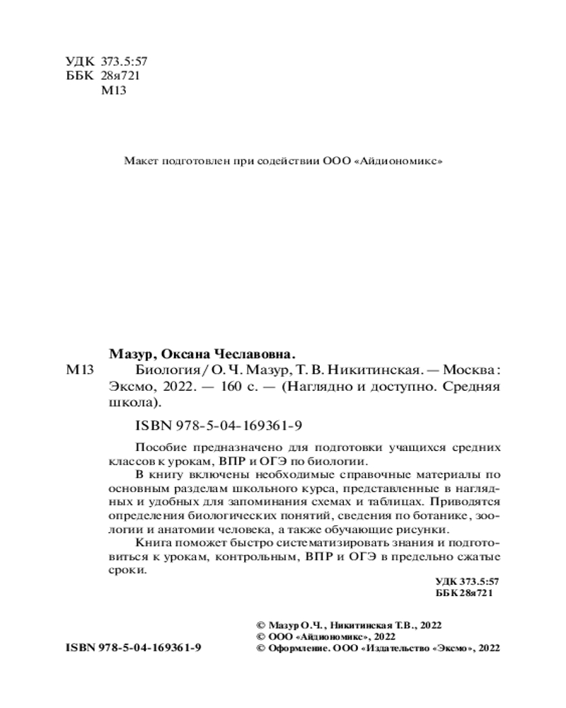 | Биология Оксана Чеславовна Мазур, Татьяна Владимировна Никитинская