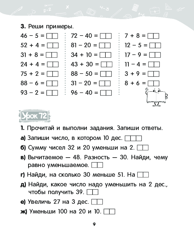 💳 Оплатить за товар можно при получении 🇰🇿 Есть бесплатная доставка по Казахстану от 1 дня 🎁 Копите бонусы с каждой покупки Серия: Учебная. Математика В тетради представлена поурочная система заданий по математике с целью формирования у учащихся устных вычислительных навыков, а также умения решать задачи разных типов. Пособие содержит многоразовые тренажёры по совершенствованию базовых навыков. Тетрадь можно использовать как на уроках в школе, так и при самостоятельной работе дома. Адресуется учащимся, учителям, родителям. |