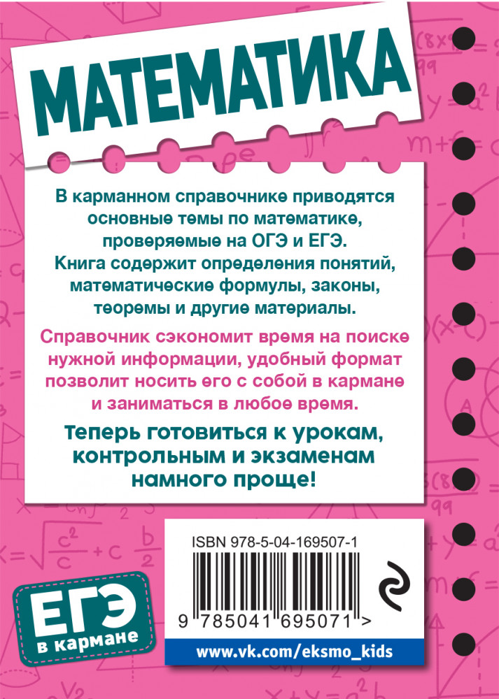 💳 Оплатить за товар можно при получении 🇰🇿 Есть бесплатная доставка по Казахстану 🎁 Копите бонусы с каждой покупки Серия: ЕГЭ в кармане (на спирали) В карманном справочнике систематизированы основные теоретические сведения по алгебре и геометрии, приводятся математические понятия и формулы, законы и теоремы, а также решения уравнений, обучающие рисунки и графики. |