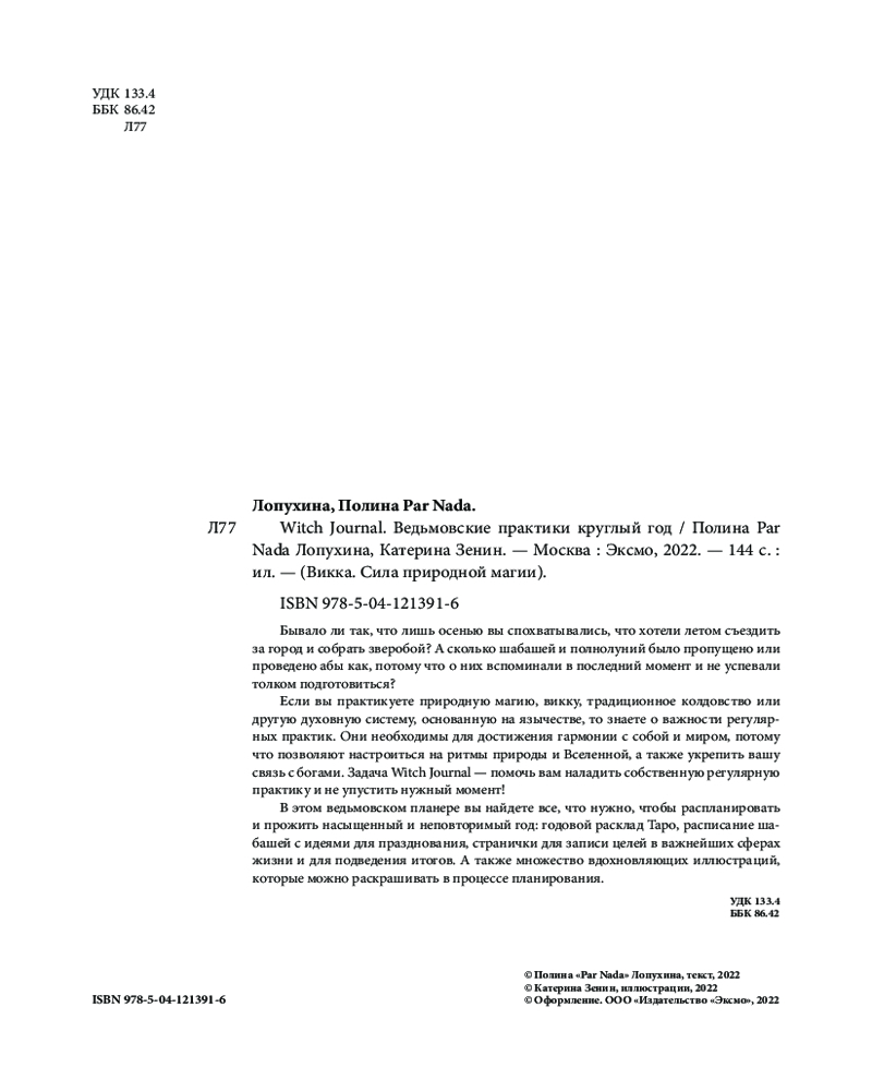 💳 Оплатить за товар можно при получении 🇰🇿 Есть бесплатная доставка по Казахстану 🎁 Копите бонусы с каждой покупки Серия: Викка. Сила природной магии Если вы практикуете природную магию, викку, традиционное колдовство или другую духовную систему, основанную на язычестве, то знаете о важности регулярных практик. Они необходимы для достижения гармонии с собой и миром, потому что позволяют настроиться на ритмы природы и Вселенной, а также укрепить вашу связь с богами. Задача ведьмовского планнера Witch Journal — помочь вам наладить собственную регулярную практику и не упустить нужный момент! |