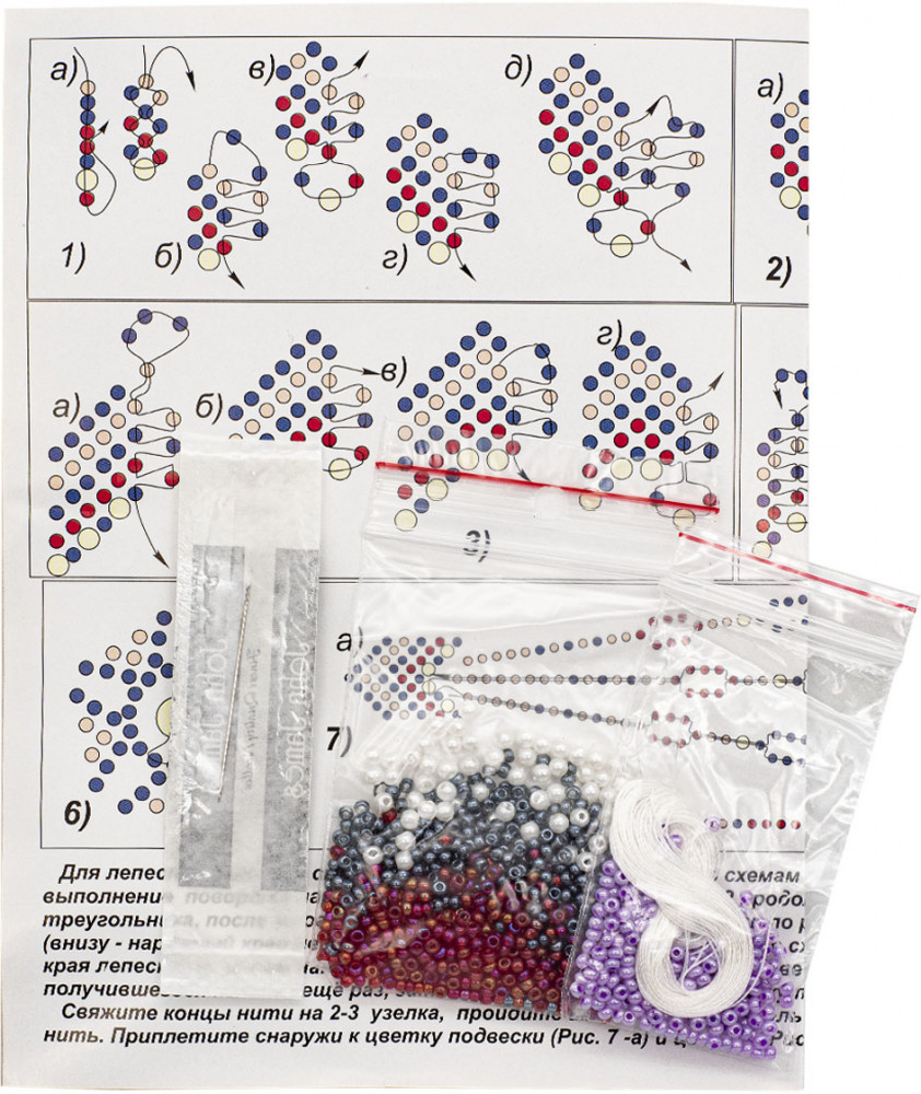 Бисероплетение — это замечательная возможность выразить себя в творчестве, развить свои способности и заявить о себе всем вокруг. Это одно из немногих занятий, которое сочетает в себе столько достоинств и пользы. Любая вещь, сделанная своими руками, выглядит очень интересно и оригинально, а сам процесс обычно доставляет массу удовольствия. Сегодня это востребованное творчество, увлекающее детей и взрослых. В наборе есть все необходимое для создания оригинальной подвески из бисера. Работа выполняется в технике «плоское параллельное плетение», когда бусины с одного ряда нанизываются на предыдущий — таким образом формируется цепочка. |