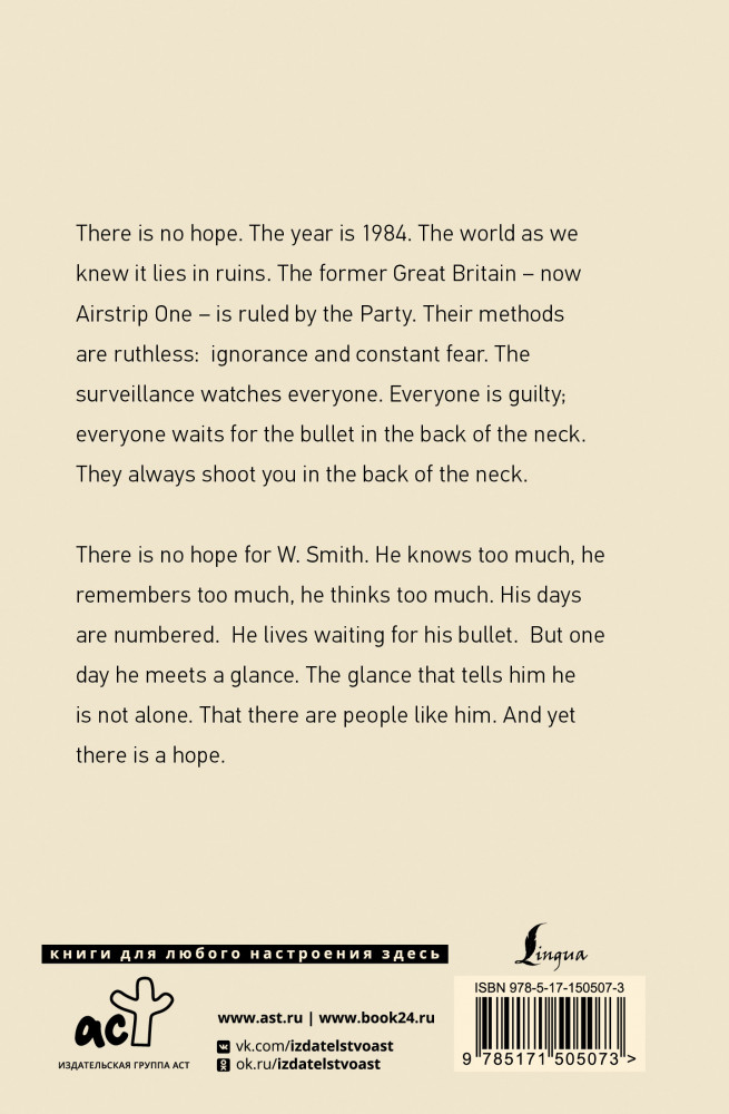 💳 Оплатить за товар можно при получении 🇰🇿 Есть бесплатная доставка по Казахстану от 1 дня 🎁 Копите бонусы с каждой покупки Серия: Exclusive Classics Hardcover Потеряли правду в море лжи? Не знаете, кому доверять? С экранов на вас льются потоки ненависти? Добро пожаловать в «1984». В ваших руках руководство по выживанию в мире официально установленного двоемыслия. В мире, где дважды два равно пяти. В мире, где нет ни прошлого, ни будущего, есть только уродливое настоящее. |
