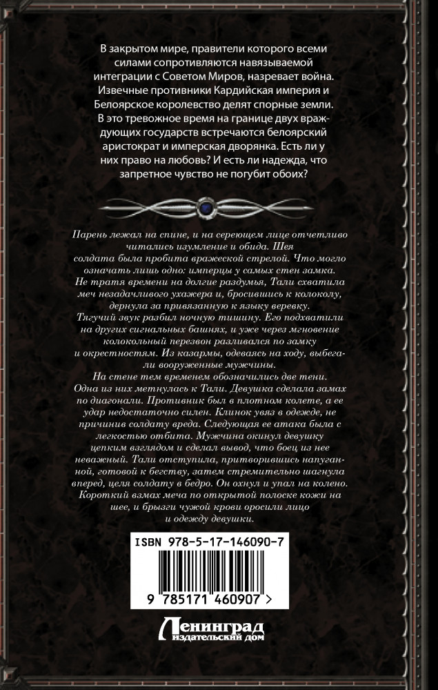 💳 Оплатить за товар можно при получении 🇰🇿 Есть бесплатная доставка по Казахстану 🎁 Копите бонусы с каждой покупки Серия: Другие миры В закрытом мире, правители которого всеми силами сопротивляются навязываемой интеграции с Советом Миров, назревает война. Извечные противники Кардийская империя и Белоярское королевство делят спорные земли. В это тревожное время на границе двух враждующих государств встречаются белоярский аристократ и имперская дворянка. Есть ли у них право на любовь? И есть ли надежда, что запретное чувство не погубит обоих? |