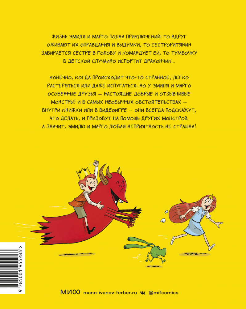 💳 Оплатить за товар можно при получении 🇰🇿 Есть бесплатная доставка по Казахстану от 1 дня 🎁 Копите бонусы с каждой покупки Серия: Эмиль и Марго Как здорово, когда рядом есть друзья, всегда готовые не только пошалить, но и прийти на помощь! Вместе гораздо проще отыскать лучшие мыслишки для сочинения, устроить лучший день рождения, разобраться с коварными Бзззошибкам или внезапной контрольной. И даже проучить заносчивого двоюродного братца, уверенного, что все его выходки сойдут ему с рук! Потому что друзья Эмиля и Марго — самые настоящие монстры. Монстры, которых мечтает встретить каждый ребёнок! С таким друзьями весело и совсем не страшно! |