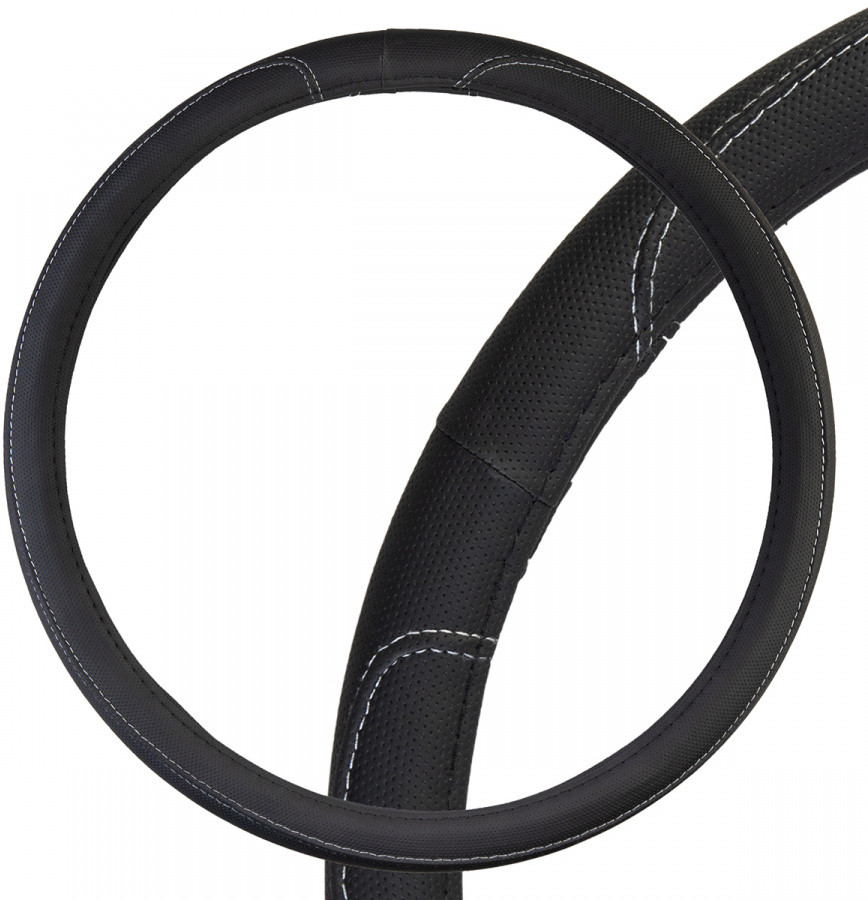 Оплетка Skyway Large-2 черная с серой прострочкой экокожа — защищает рулевое колесо от повреждений, царапин и загрязнений, а также позволяет скрыть дефекты, полученные в процессе эксплуатации. Оплетка идеально подходит для рулевого колеса грузовых автомобилей. За счёт поверхности из экокожи обеспечивает идеальное сцепление ладоней с рулём и создает комфорт при вождении. Лаконичный дизайн выгодно подчеркнёт вкус владельца автомобиля.
