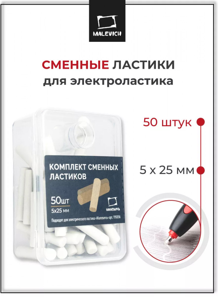 МалевичЪ Комплект ластиков сменных-20% +27 трещина в коробочке не подходят для механического карандаша