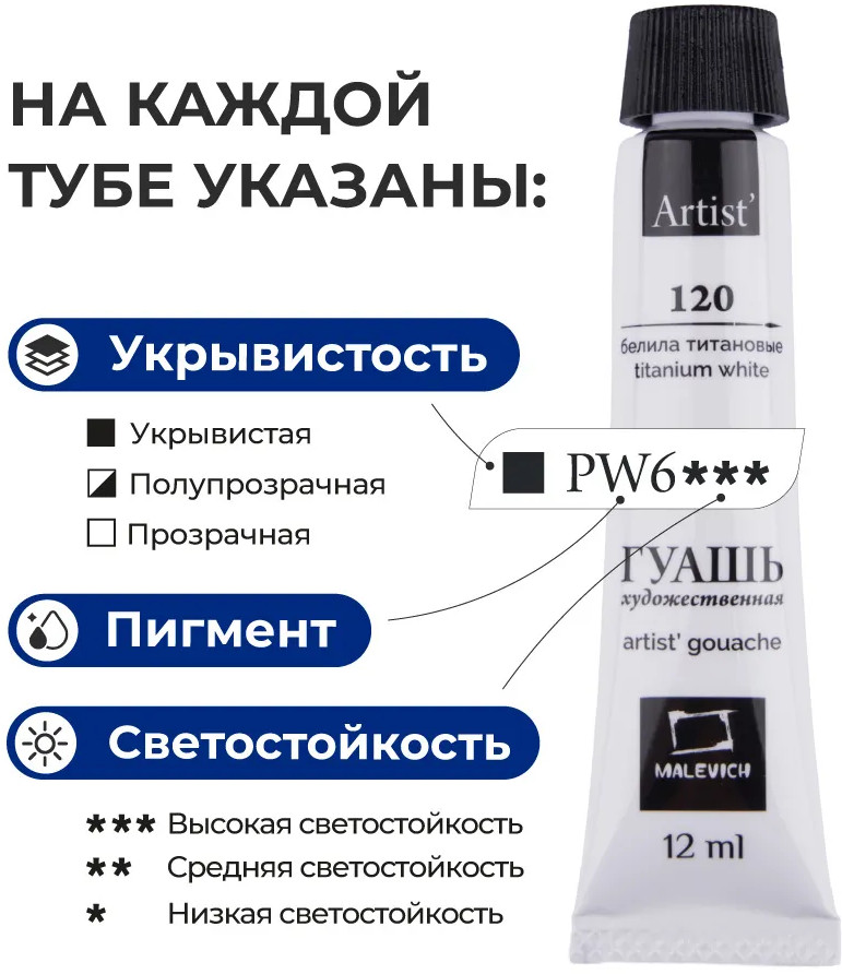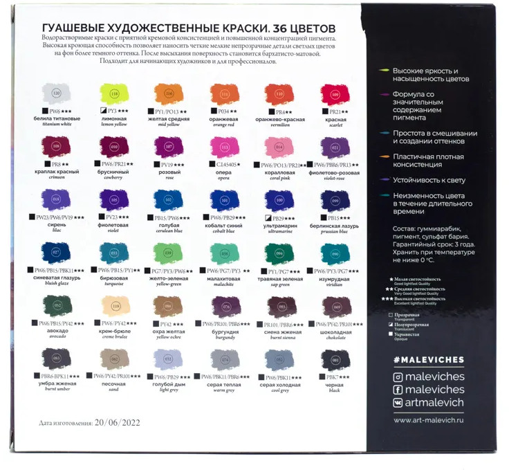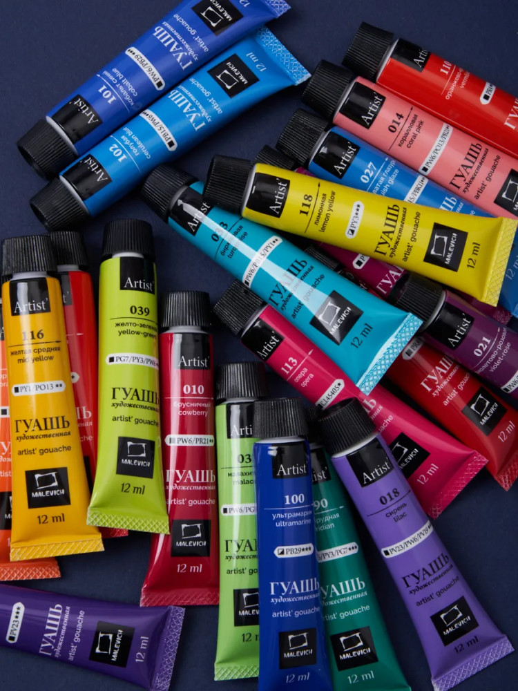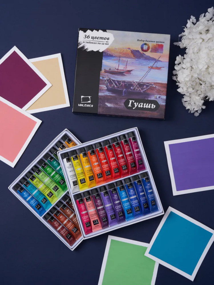 МалевичЪ Набор гуаши-20% +254 яркость цвета качество для детей