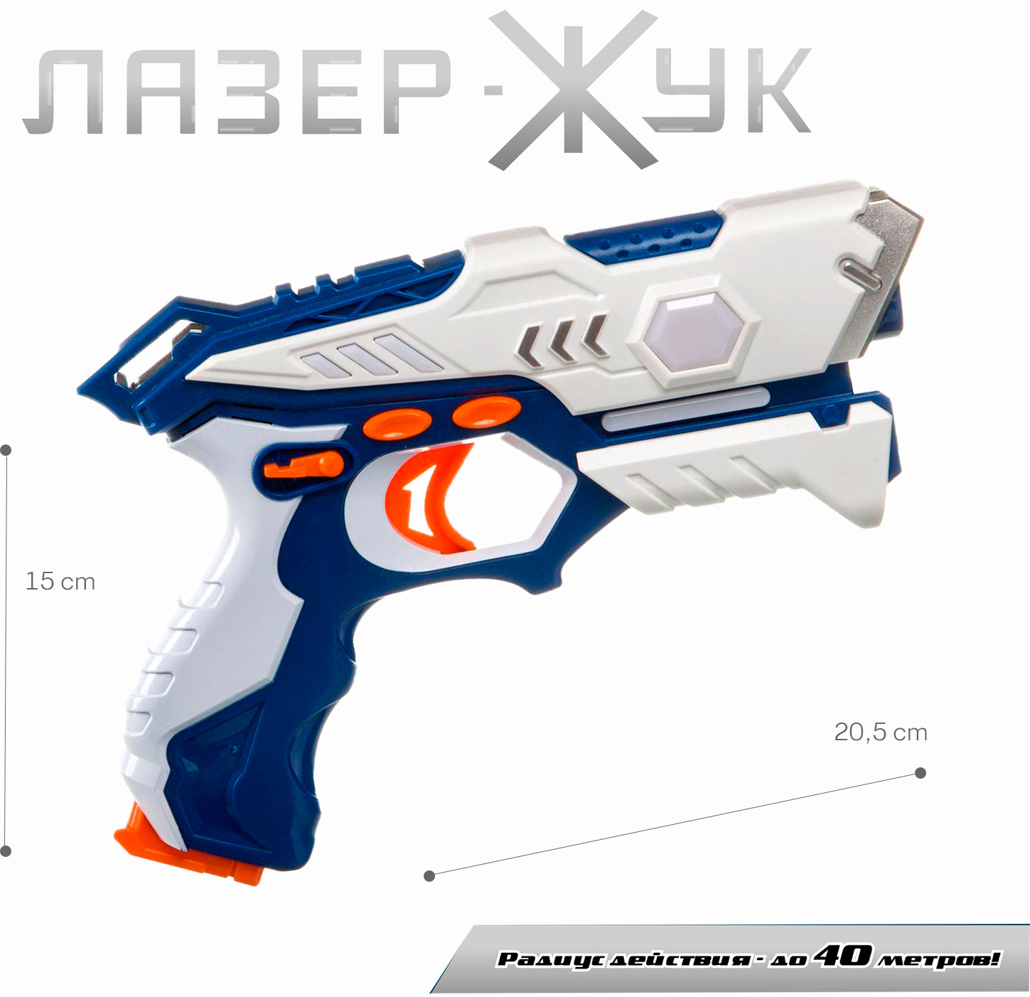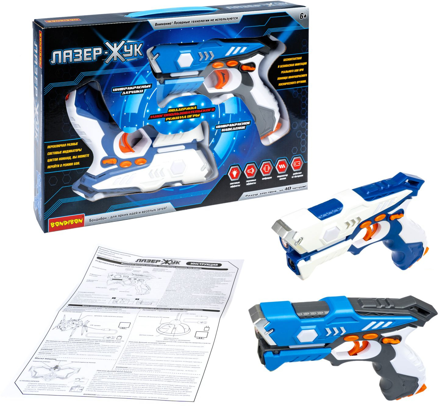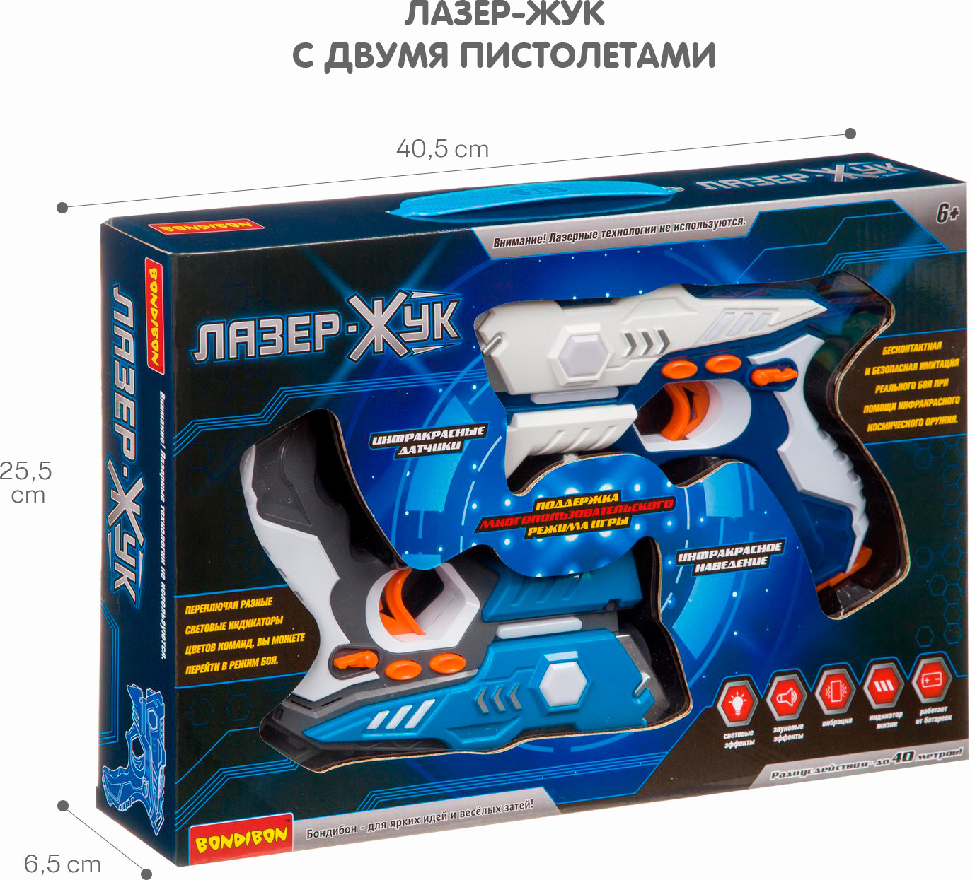Bondibon Набор бластеров «Лазер-Жук»В данный момент этот товар отсутствует в продаже. Возможно, у нас найдется аналогичный или похожий товар здесь. «Bondibon» представляет новое поколение бесконтактного игрушечного оружия! Вместо пулек и дротиков — световые пучки инфракрасного излучения! Бесконтактная и безопасная имитация реального боя происходит при помощи ИК-датчиков приема-передачи, что делает бой максимально реалистичным. Бластеры могут работать в многопользовательском режиме, играть можно не только вдвоем, но и целой командой! Для двух игроков в возрасте от 6 лет. Радиус действия до 40 метров. Наличие светового, звукового эффекта, режима вибрации. Инфракрасный свет безопасен для здоровья человека. |