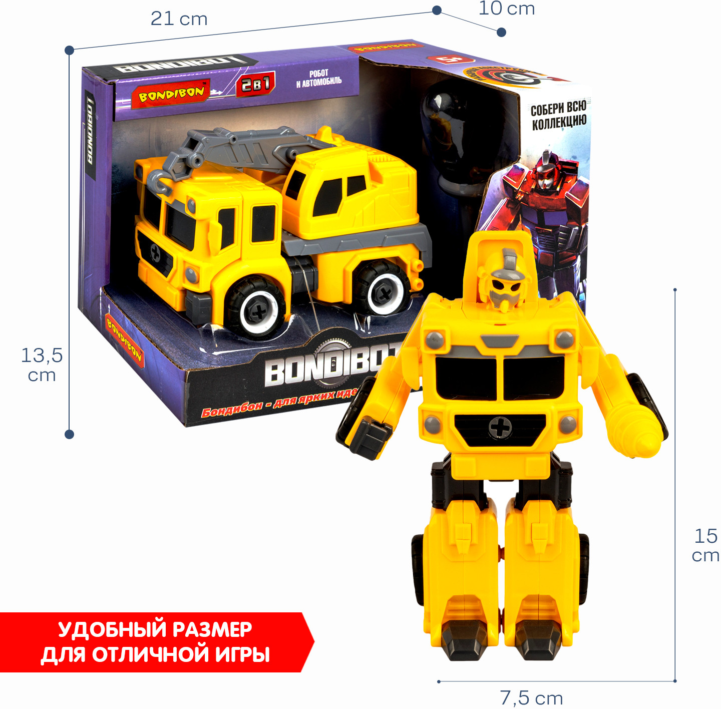 Bondibon Трансформер-конструктор «Робот-автокран строительный»В данный момент этот товар отсутствует в продаже. Возможно, у нас найдется аналогичный или похожий товар здесь. Серия: Bondibot Чем удивить маленького мальчика? Самым верным решением будет уникальный «Трансформер-конструктор с отверткой» из серии «Bondibot» от «Bondibon»! Это герой многочисленных комиксов, который покорил уже множество детей! Он с легкостью трансформируется простым складыванием из робота с подвижными деталями в строительный кран и обратно в храброго робота! С помощью ключа и отвертки робот разбирается на составные части как конструктор. Все детали выполнены из качественного пластика и покрыты безопасными красками. Играть можно как одному, так и с другом по очереди. В процессе игры ребенок развивает мелкую моторику, пространственное и образное мышление и тренирует воображение. |