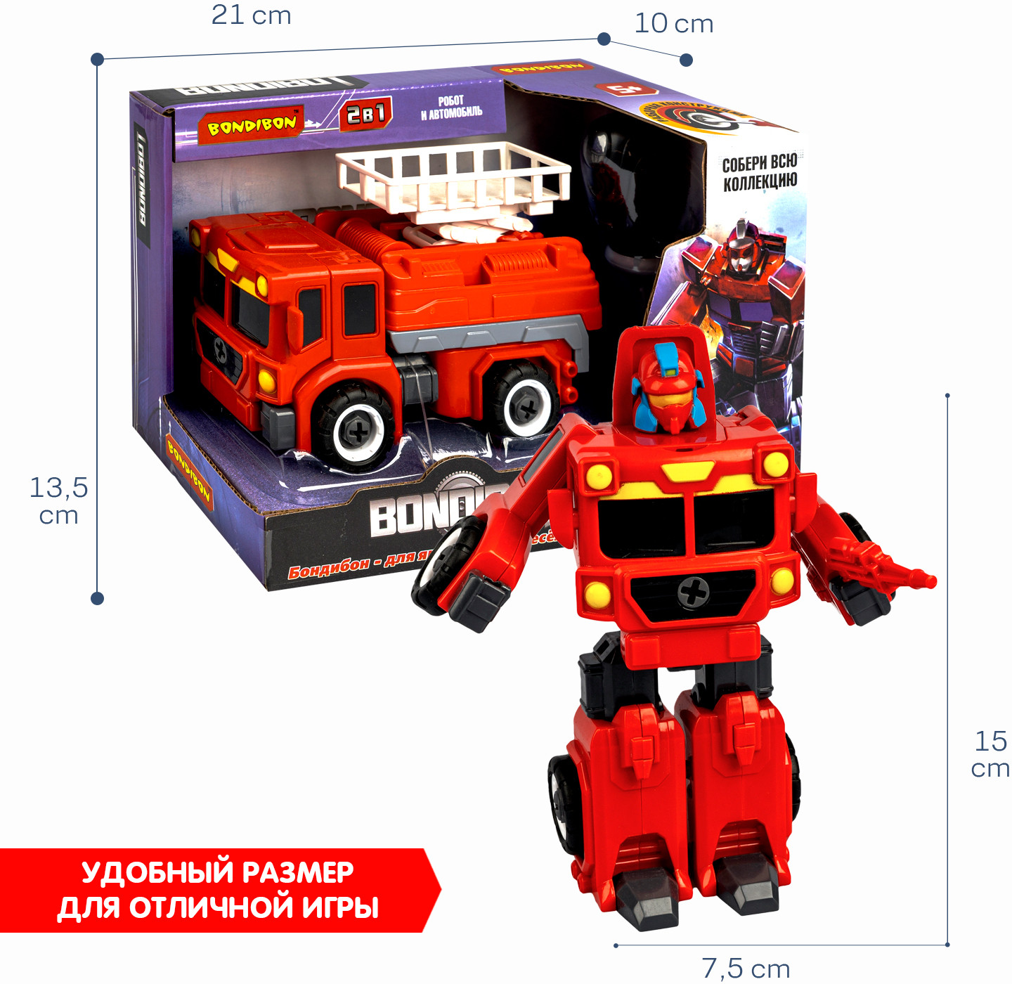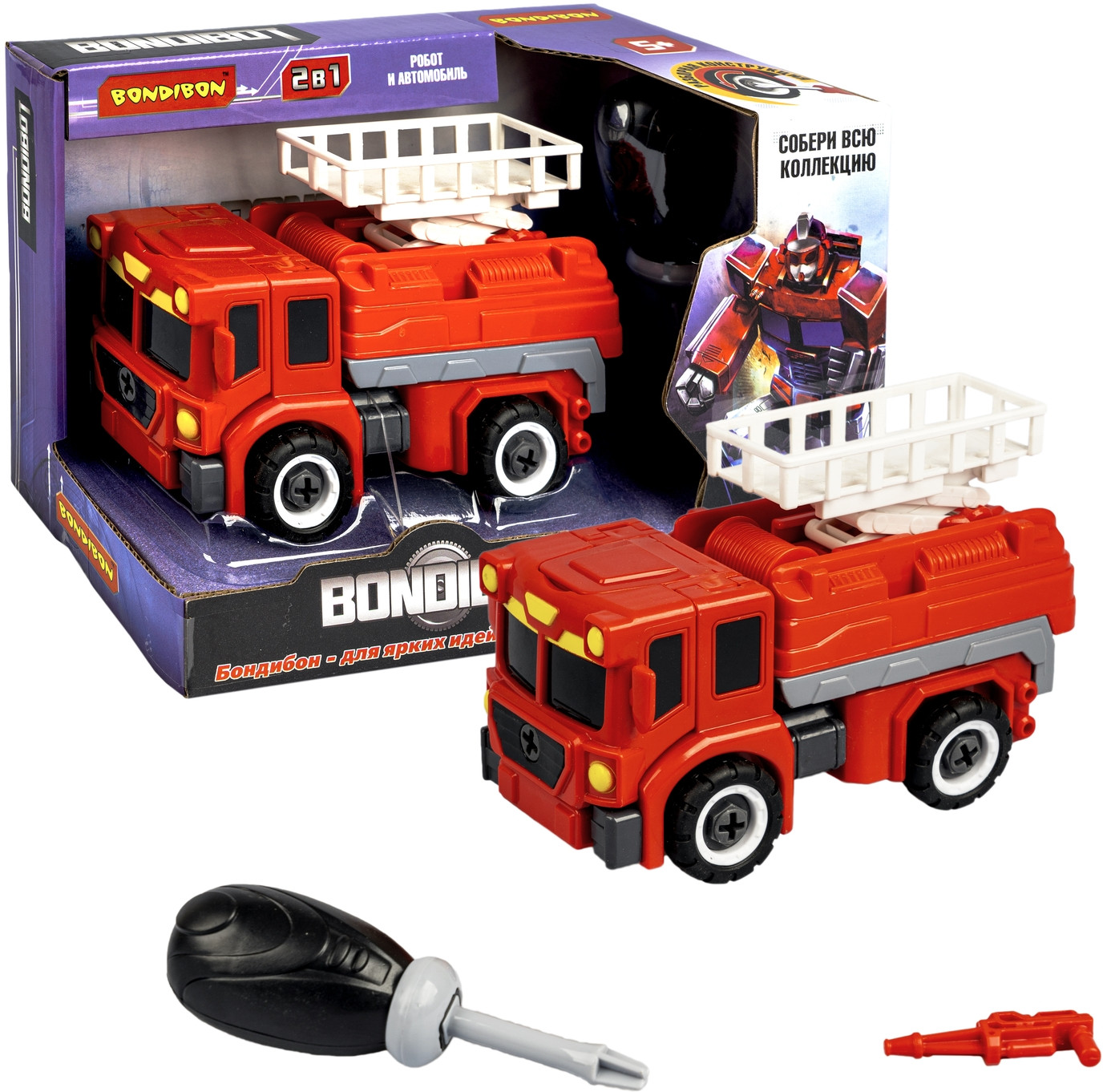 Bondibon Трансформер-конструктор «Робот-пожарная машина автовышка»В данный момент этот товар отсутствует в продаже. Возможно, у нас найдется аналогичный или похожий товар здесь. Серия: Bondibot Чем удивить маленького мальчика? Самым верным решением будет уникальный «Трансформер-конструктор с отверткой» из серии «Bondibot» от «Bondibon»! Это герой многочисленных комиксов, который покорил уже множество детей! Он с легкостью трансформируется простым складыванием из робота с подвижными деталями в строительный кран и обратно в храброго робота! С помощью ключа и отвертки робот разбирается на составные части как конструктор. Все детали выполнены из качественного пластика и покрыты безопасными красками. Играть можно как одному, так и с другом по очереди. В процессе игры ребенок развивает мелкую моторику, пространственное и образное мышление и тренирует воображение. |