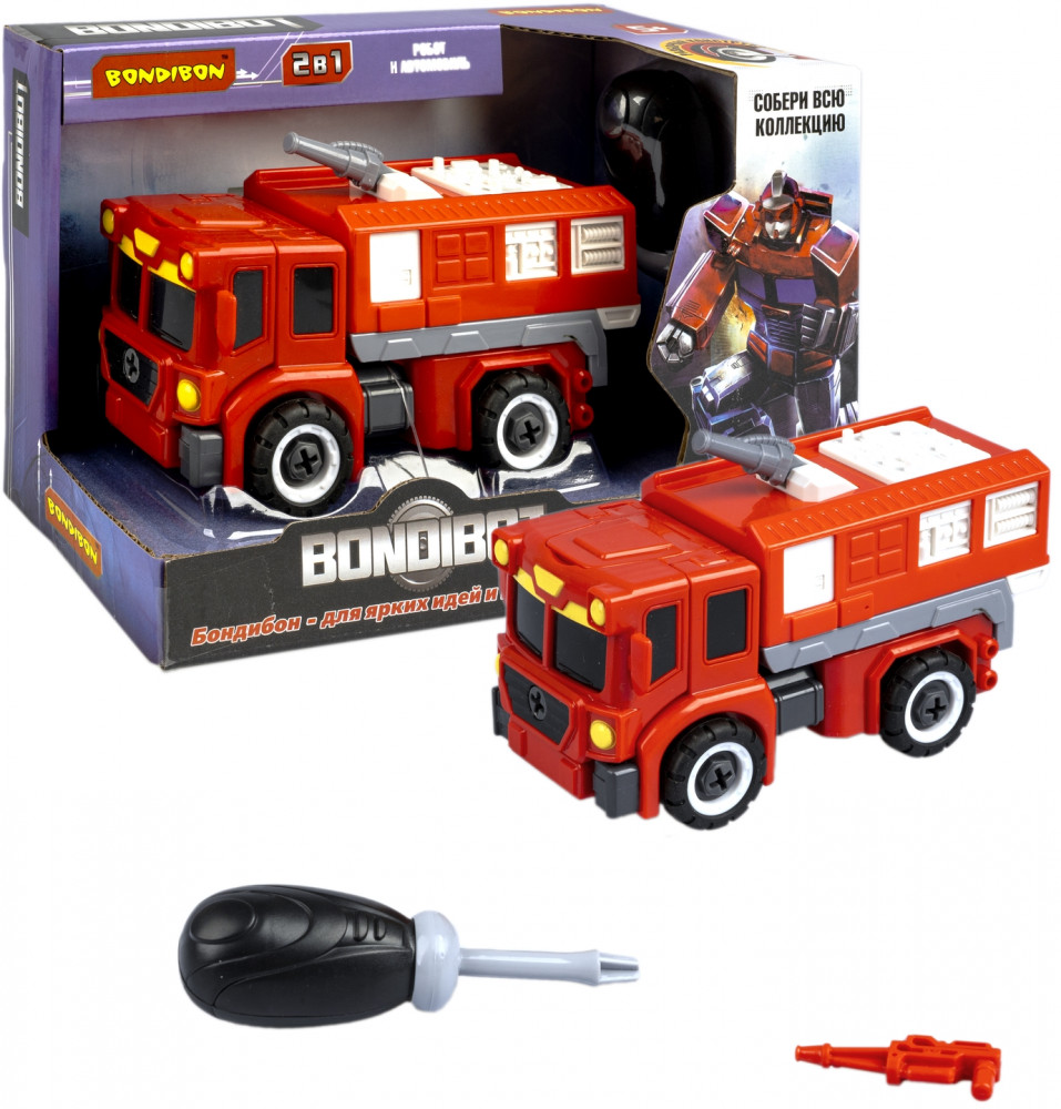 Bondibon Трансформер-конструктор «Робот-пожарная машина с водометом»В данный момент этот товар отсутствует в продаже. Возможно, у нас найдется аналогичный или похожий товар здесь. Серия: Bondibot Чем удивить маленького мальчика? Самым верным решением будет уникальный «Трансформер-конструктор с отверткой» из серии «Bondibot» от «Bondibon»! Это герой многочисленных комиксов, который покорил уже множество детей! Он с легкостью трансформируется простым складыванием из робота с подвижными деталями в строительный кран и обратно в храброго робота! С помощью ключа и отвертки робот разбирается на составные части как конструктор. Все детали выполнены из качественного пластика и покрыты безопасными красками. Играть можно как одному, так и с другом по очереди. В процессе игры ребенок развивает мелкую моторику, пространственное и образное мышление и тренирует воображение. |