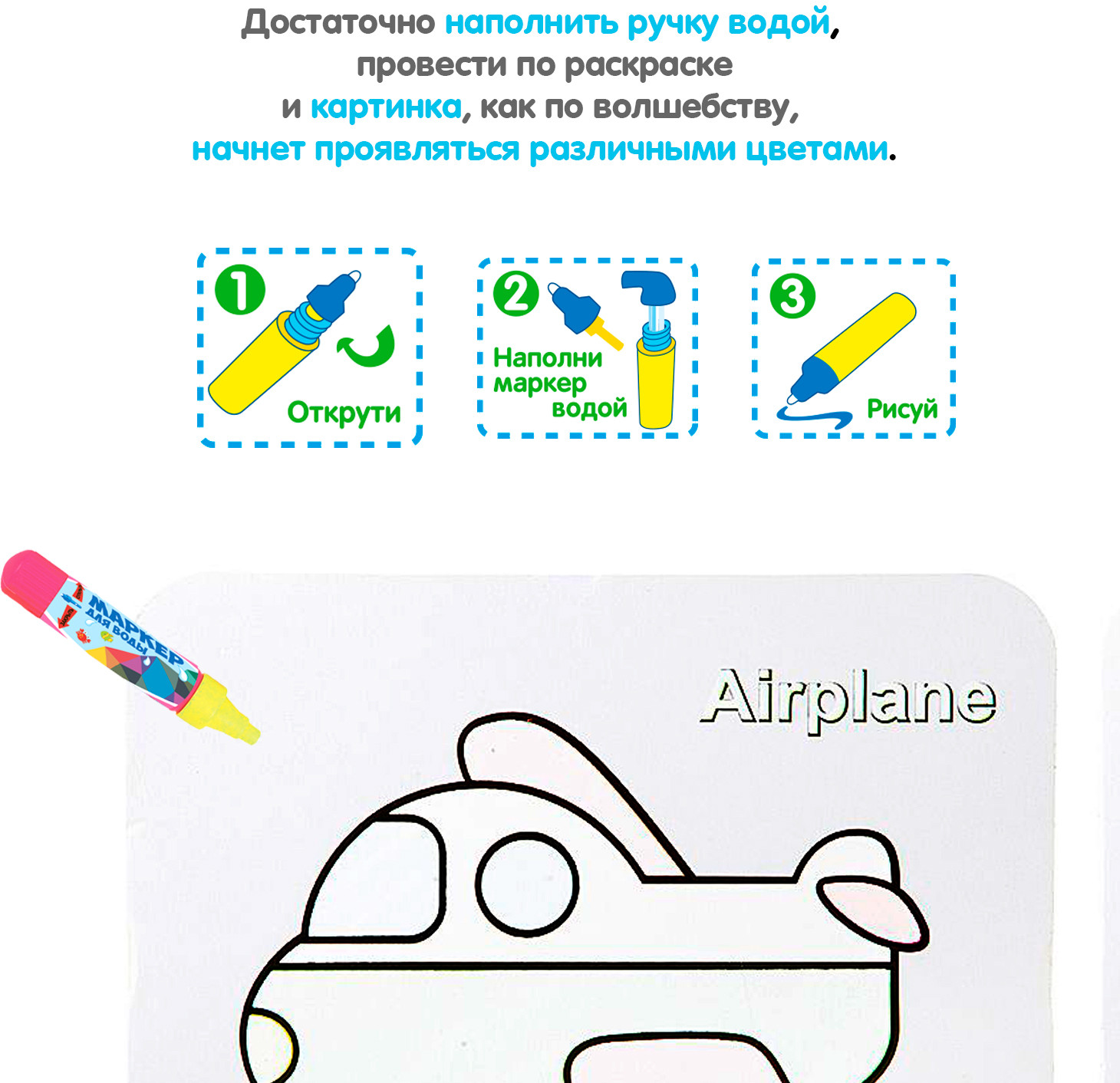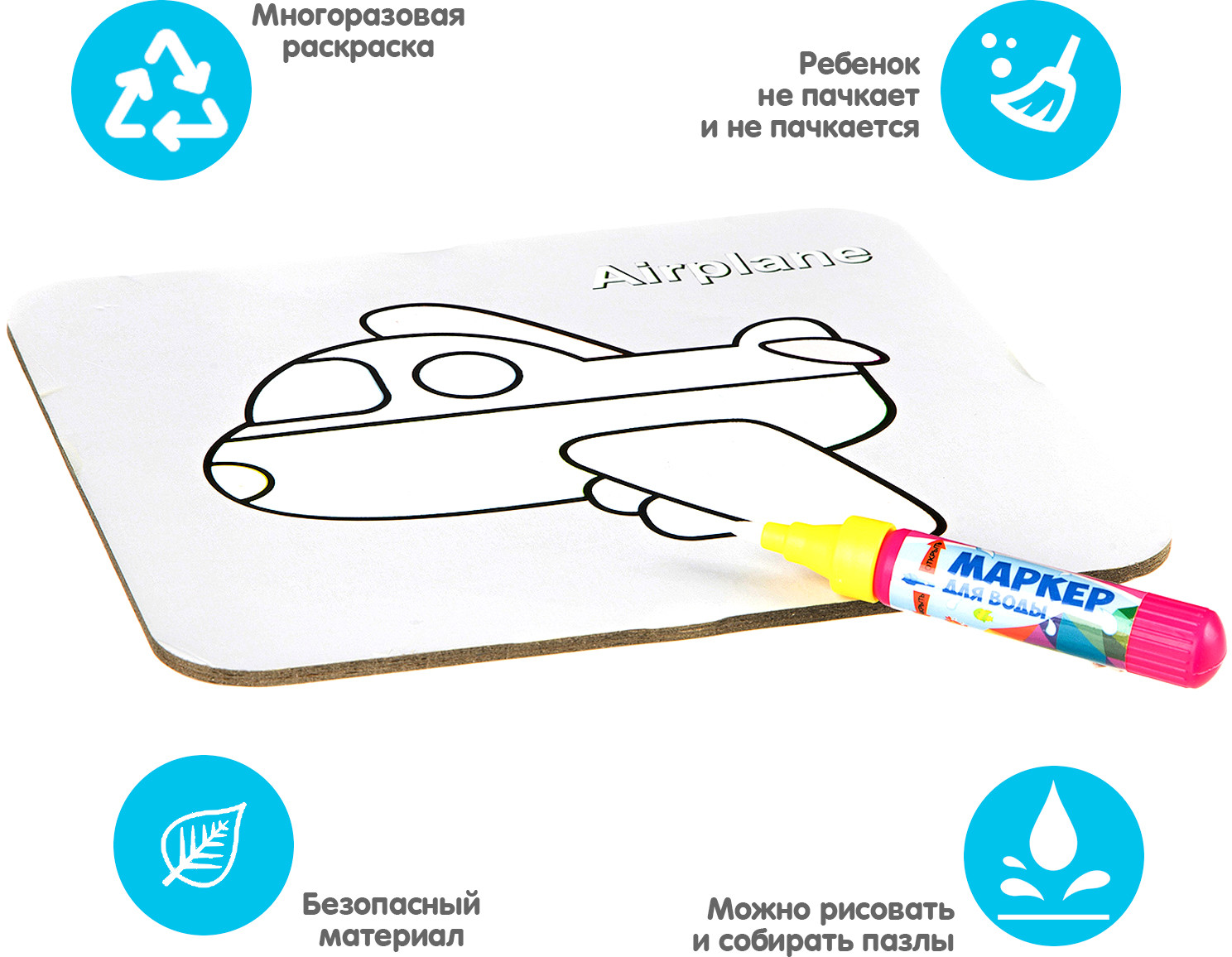 Bondibon Раскраска-пазл многоразовая «Самолет»В данный момент этот товар отсутствует в продаже. Возможно, у нас найдется аналогичный или похожий товар здесь. Серия: Baby You Многоразовая водная раскраска-пазл — замечательный набор 2 в 1. Водная раскраска послужит увлекательным занятием для юных начинающих художников, даже для тех, кто еще совсем не умеет рисовать. Достаточно наполнить ручку водой и провести по стороне раскраске, и картинка, как по волшебству, начнет проявляться различными цветами. После высыхания картинка опять становится бесцветной, и ребенок снова может творить. После рисования можно перевернуть картинку на другую сторону и собрать пазл. |