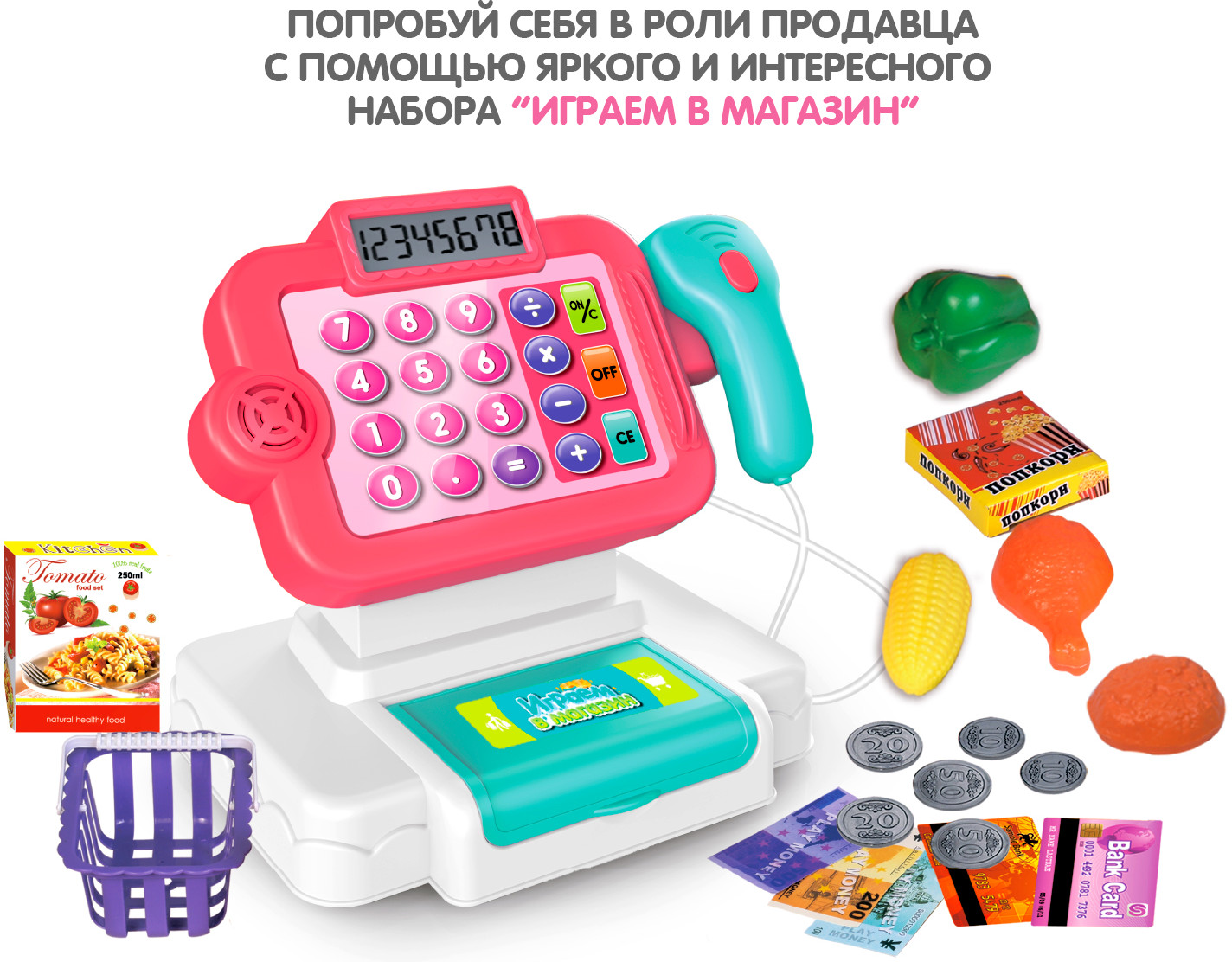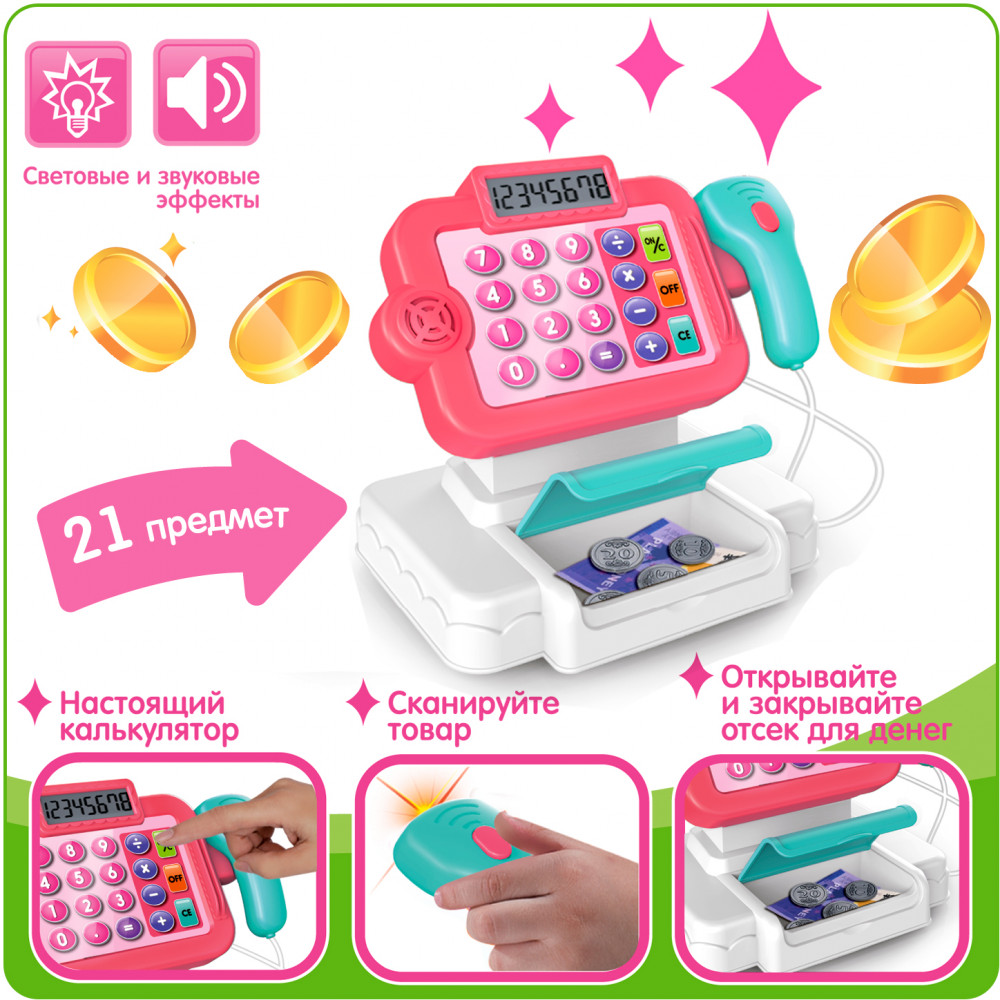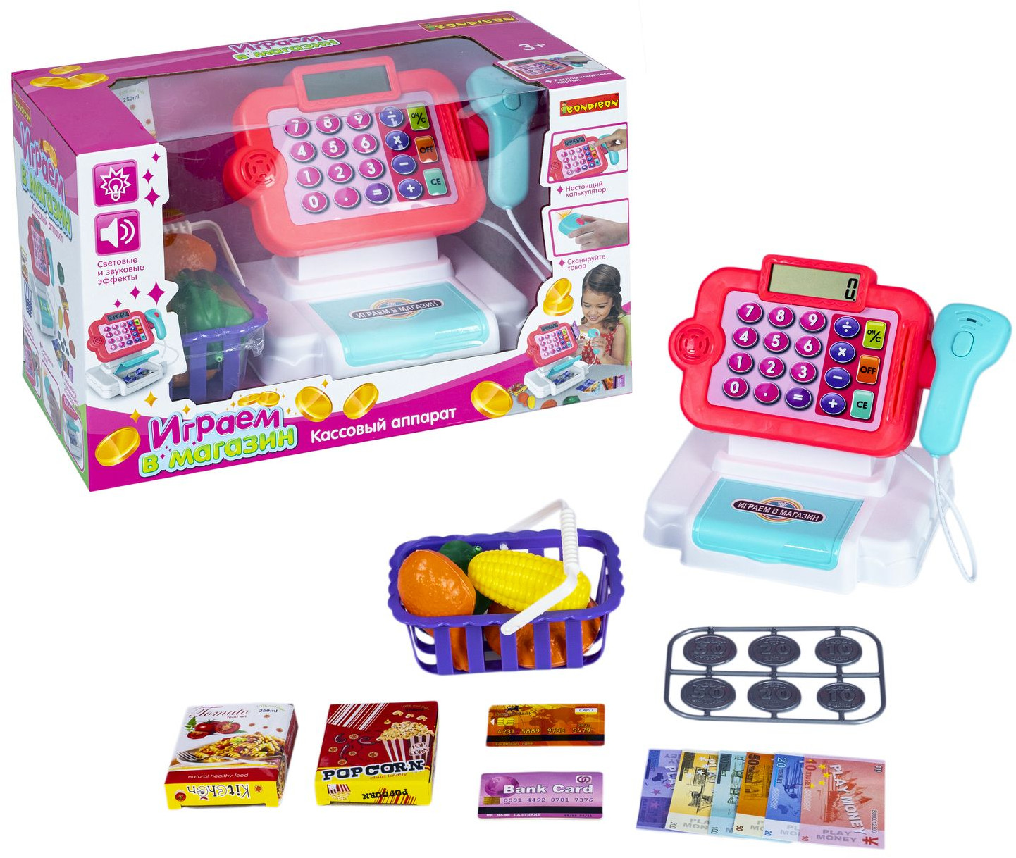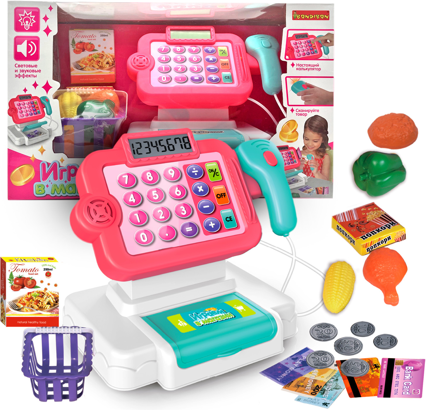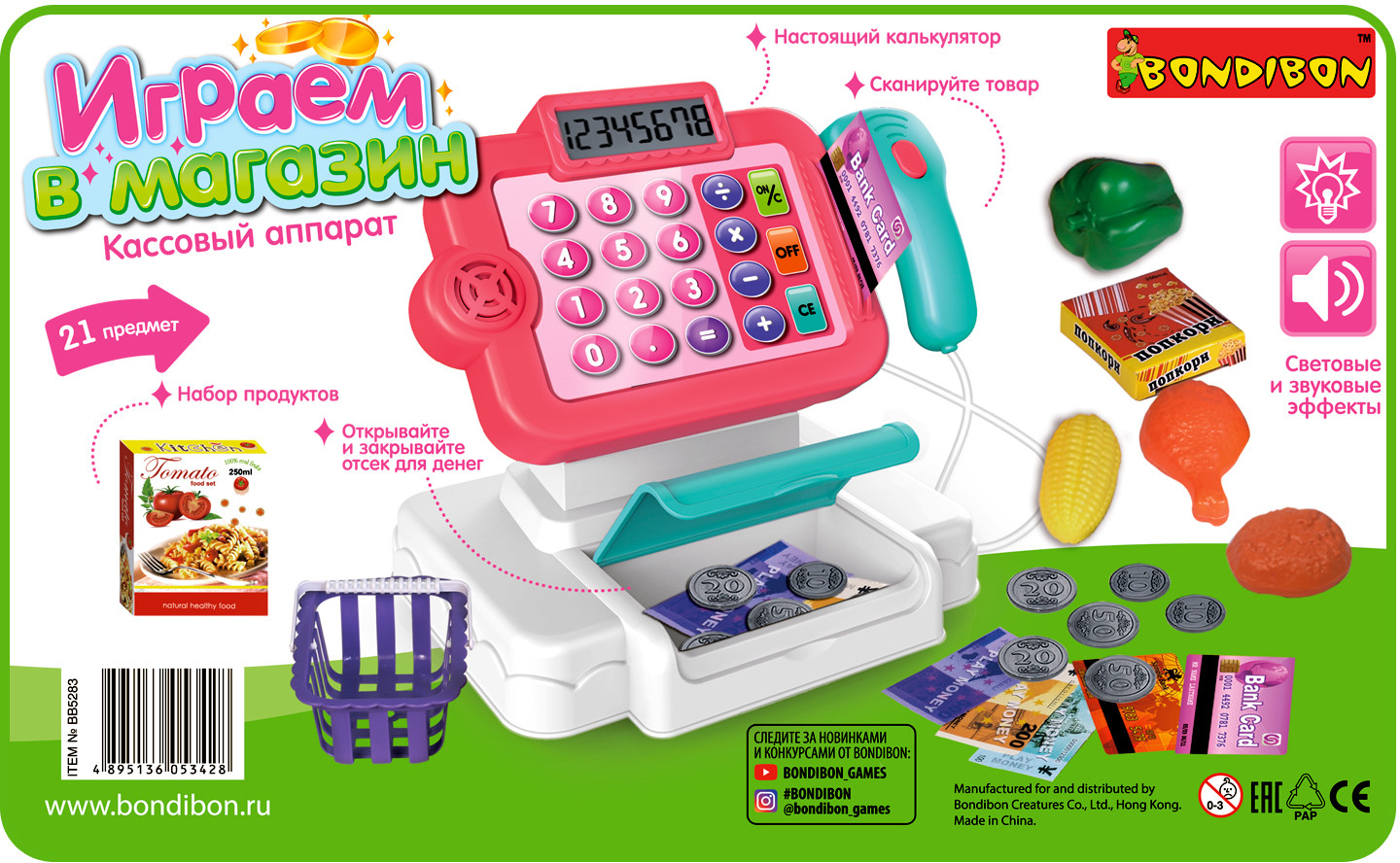 Bondibon Набор игровой «Играем в магазин»В данный момент этот товар отсутствует в продаже. Возможно, у нас найдется аналогичный или похожий товар здесь. «Играем в магазин» — замечательный набор для сюжетно-ролевых игр от TM «Bondibon». Тренируйте счет, развивайте воображение и воплощайте фантазию в реальность. Игрушка оснащена звуковыми и световыми эффектами. Сканируйте товар, высчитывайте стоимость на калькуляторе, расплачивайтесь деньгами и картой, открывайте и закрывайте отсек для денег. |