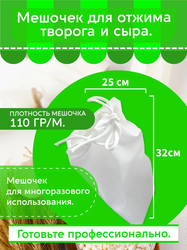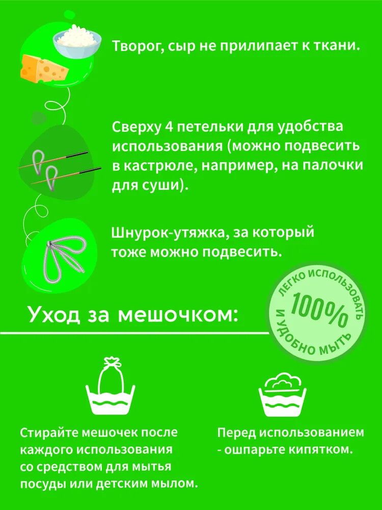 Полезная партия Мешок для отжима творога и сыра-20% +43 плотный мешок легко стирается петельки шнурок удобный