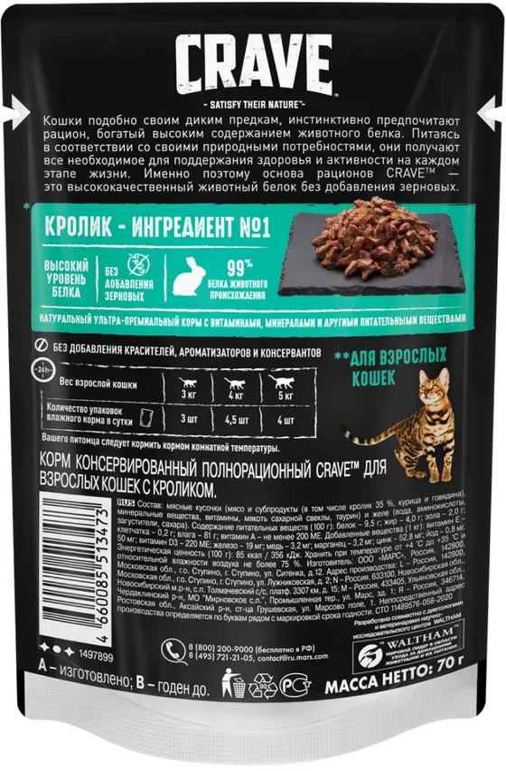 Crave Корм для кошек с кроликом