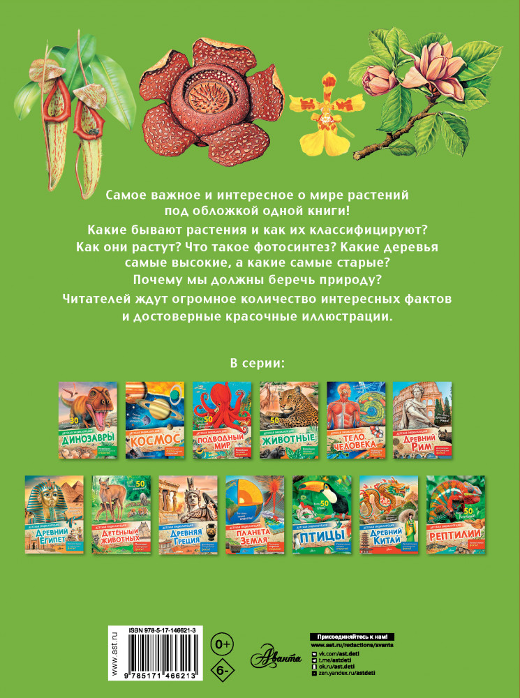 Это издание прекрасно подходит для первого знакомства с миром растений. Оно расскажет как о тех растениях, которые мы видим вокруг себя каждый день, так и о тропических, способных поразить любое воображение!