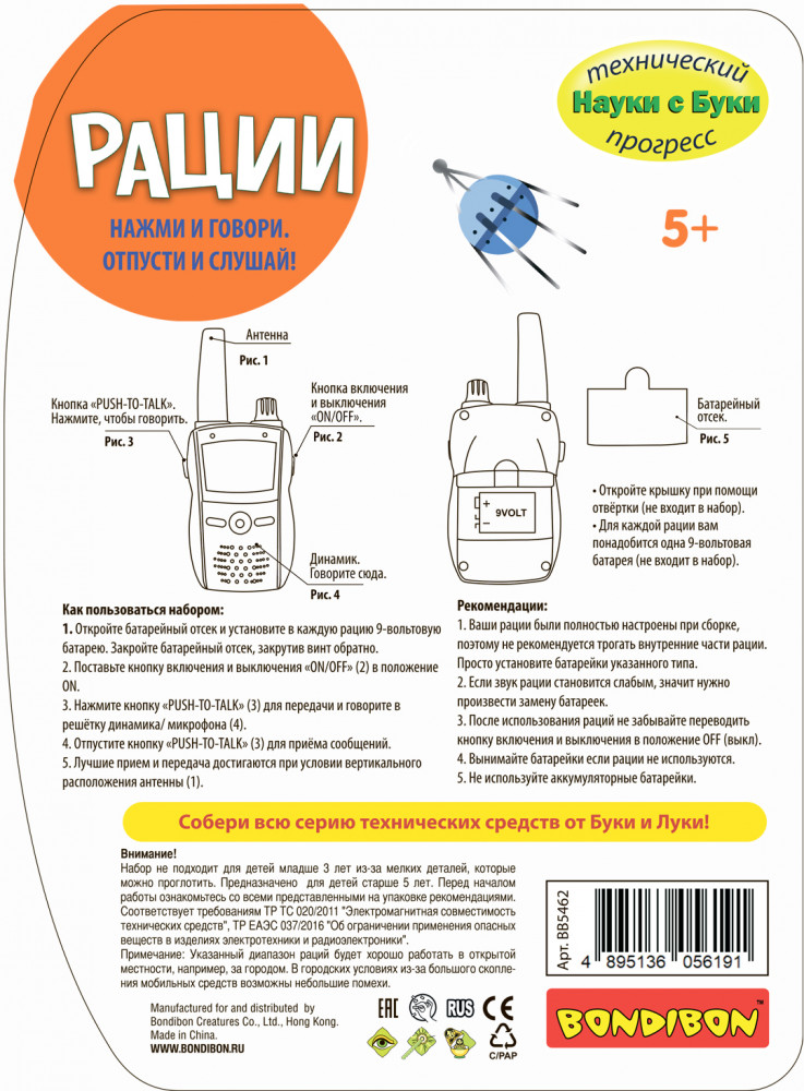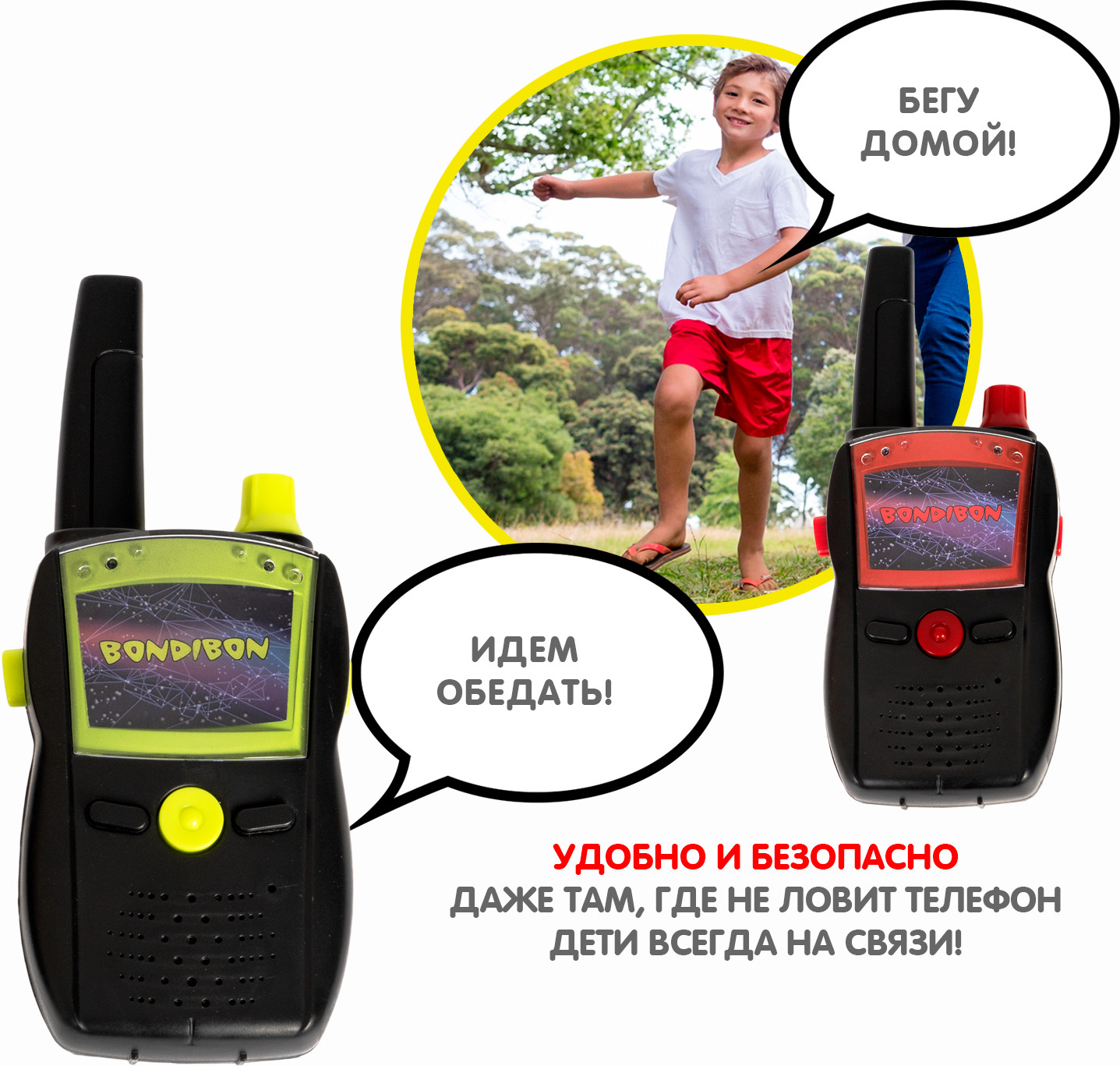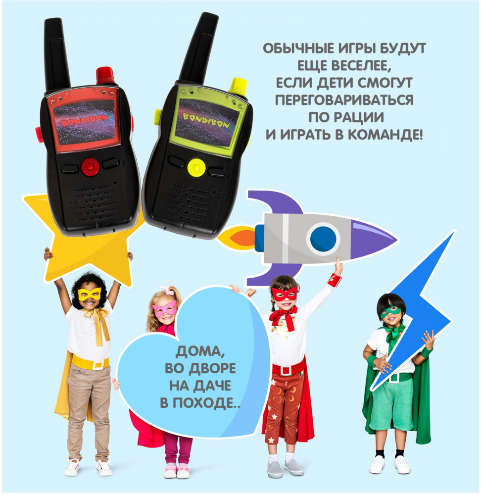 Первый, первый, я — второй. На связи! Вы всегда будете на связи с веселыми рациями по типу walkie talkie от «Bondibon»! С помощью рации ребенок погрузится в захватывающую игру целиком, сможет держать связь с другом на расстоянии, решать необходимые задачи не приближаясь друг другу. С такой игрушкой дети весело проведут время, играя в прятки, шпионские игры или проходя с друзьями квесты.